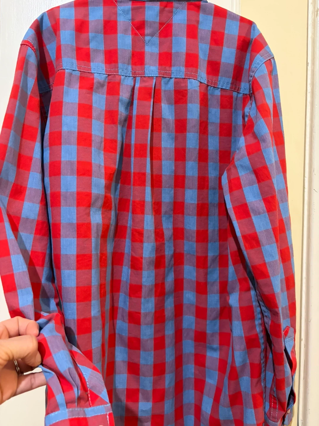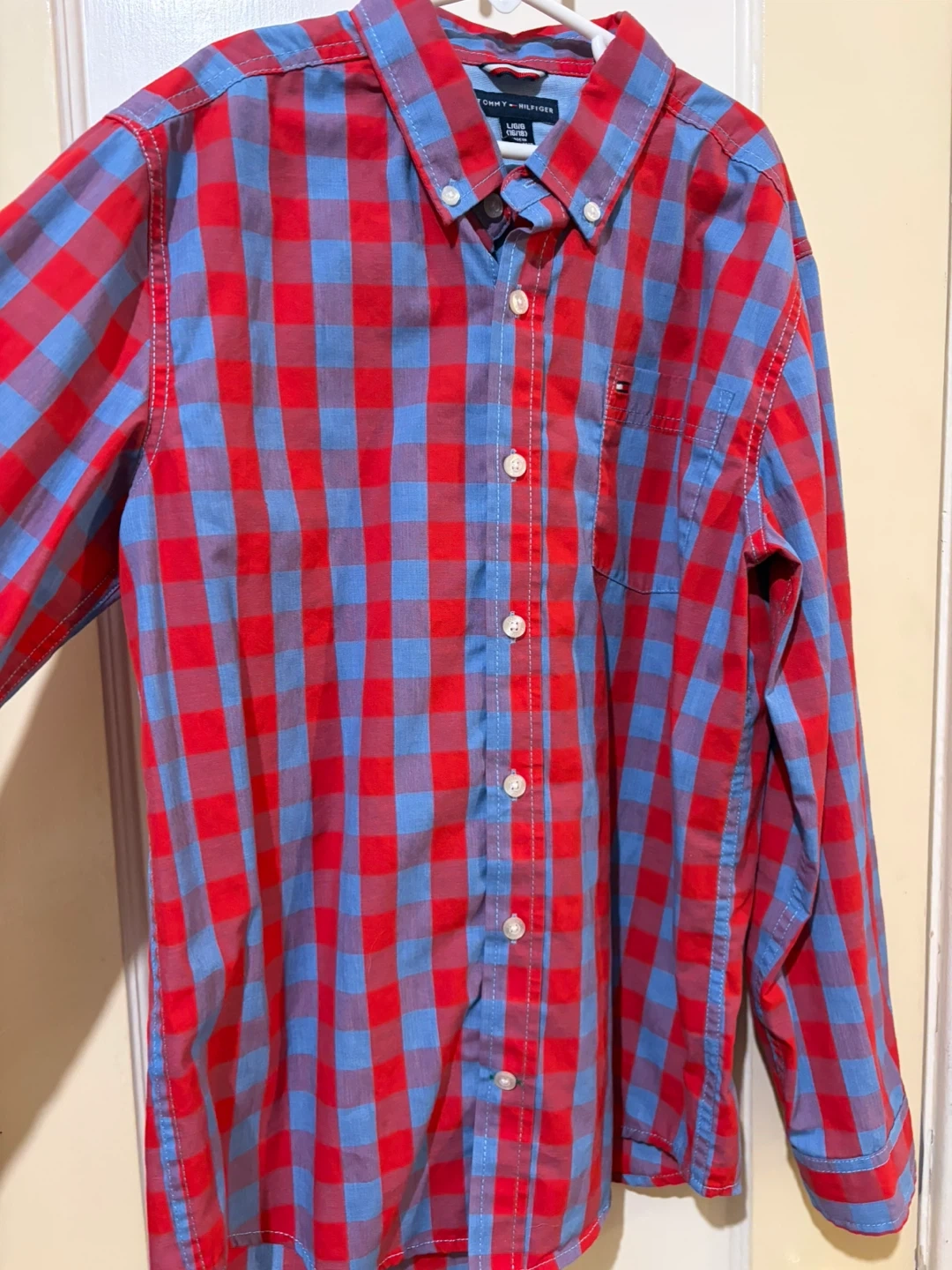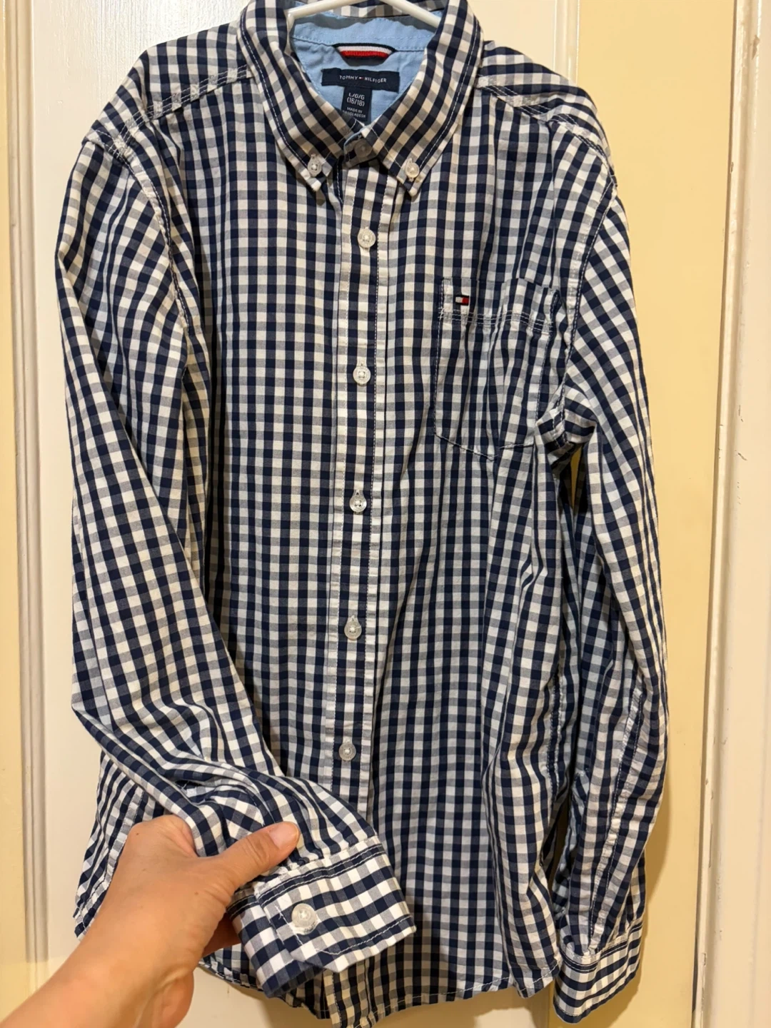 2 Tommy Hilfiger boys' button-down long sleeve shirts. Like new . My son outgrew it way too fast . Size L (16/18). Made in Bangladesh.