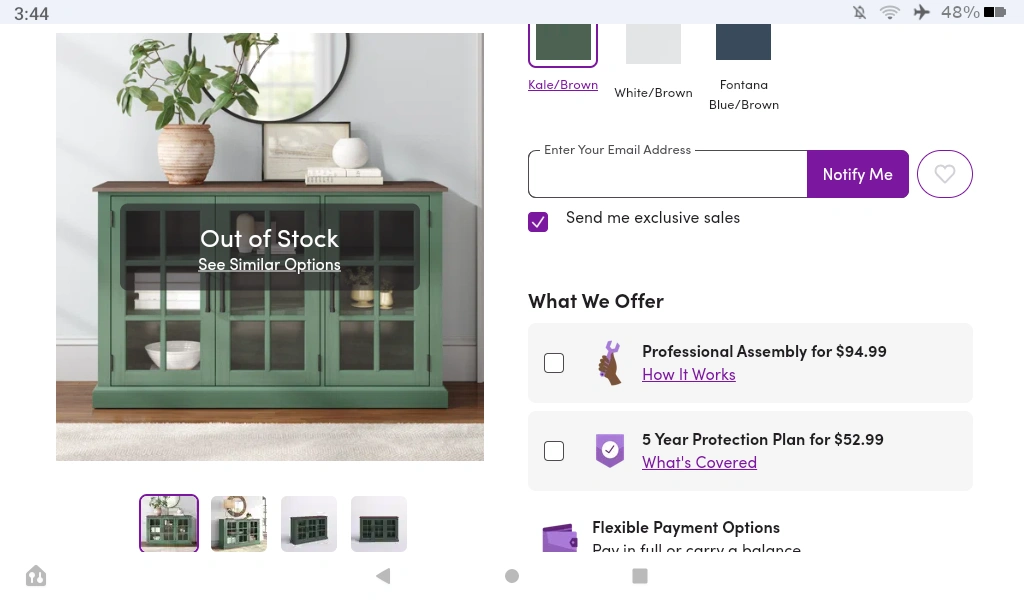 10Selling a kale green sideboard that is brand spanking new and still in the box. (Assembly is required.) Here are the dimensions from a similiar item on the Wayfair site: 30" h, 15" w, 39" l. It's in great condition and ready to add a touch of style to your living space!
