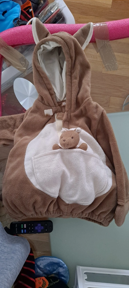 15Adorable kangaroo costume for your little one! It includes a hooded top with kangaroo ears and a pouch with a plush joey, along with matching pants with footies. Perfect for dress-up or a cozy outfit!