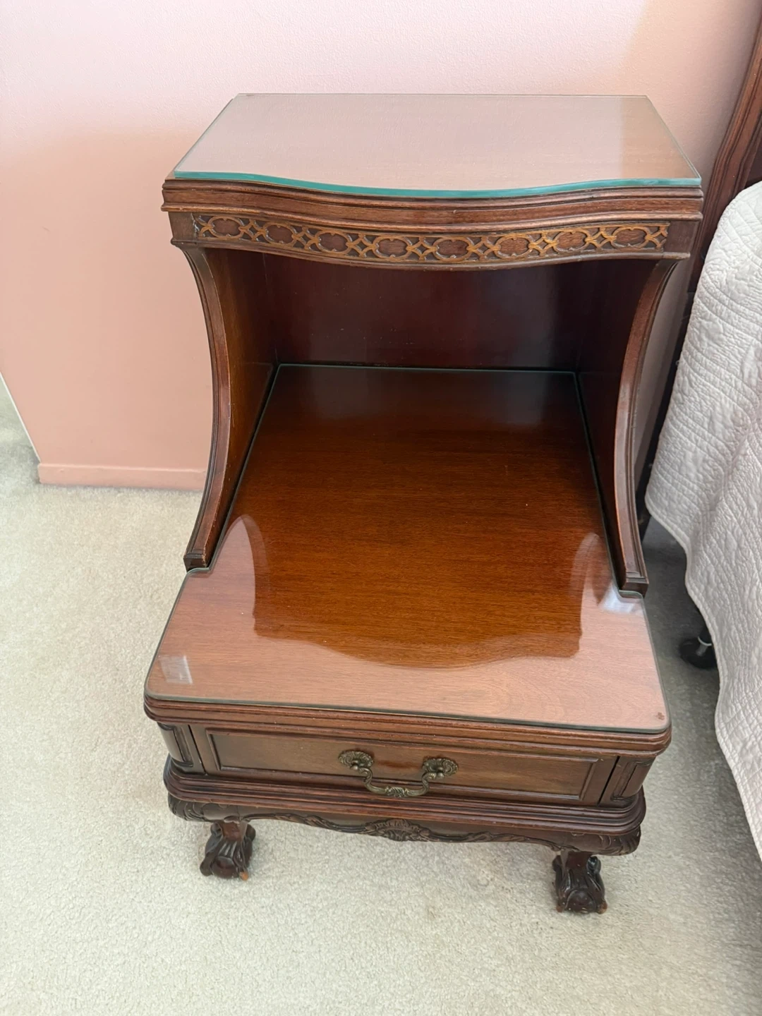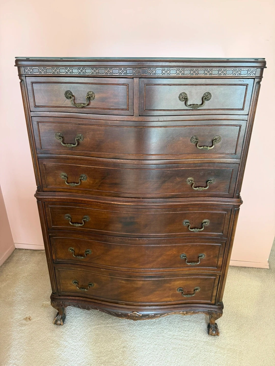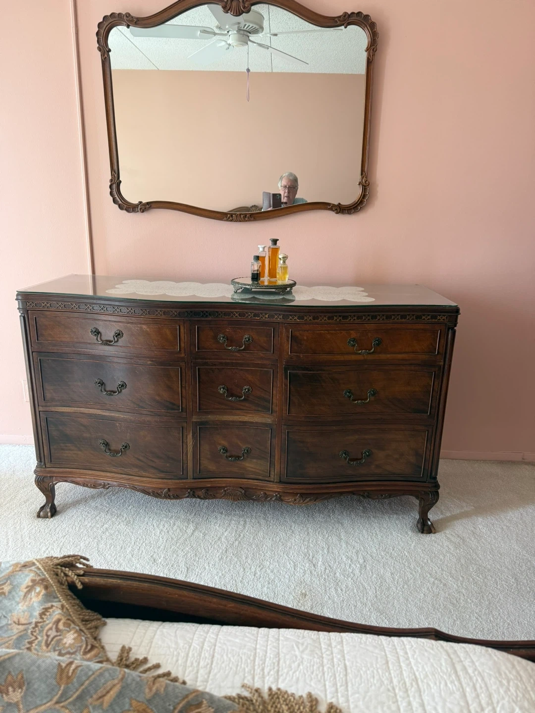 10Selling a beautiful set of dressers and nightstand set by Mr Airy Furniture Co. The dresser features nine drawers, providing ample storage space. The other tall dresser has 7 draws. The nightstand has a classic design with a drawer and open shelf. All 4 pieces pieces are made of high-quality wood and have a rich, dark finish. Perfect for adding a touch of elegance to your bedroom! SIZES TALL DRESSER 55” high 35.5 across 21” deep LONG DRESER 35.5” high 60”across 21” deep Night stands 28.5” high on back half 17” tall front half 22” deep 18” across