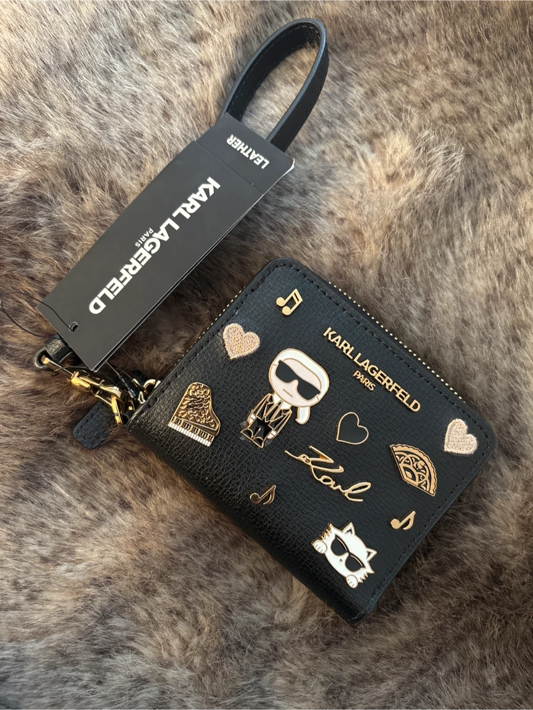 291Brand new Karl Lagerfeld Paris wallet in black and gold. It is a one size item and is made of leather. It has a stylish design with several gold accents.