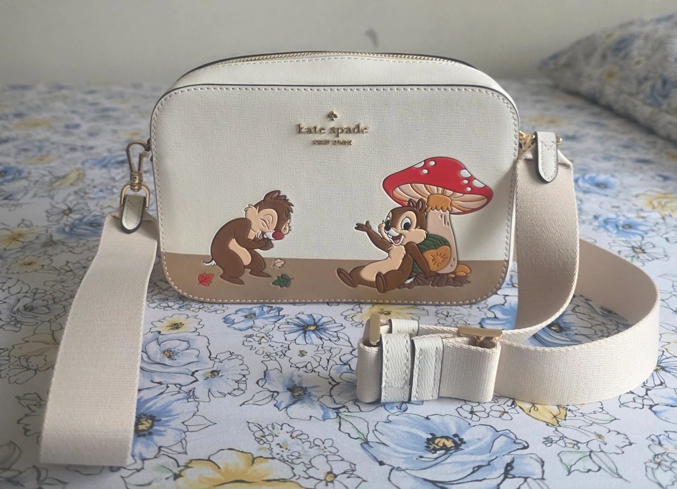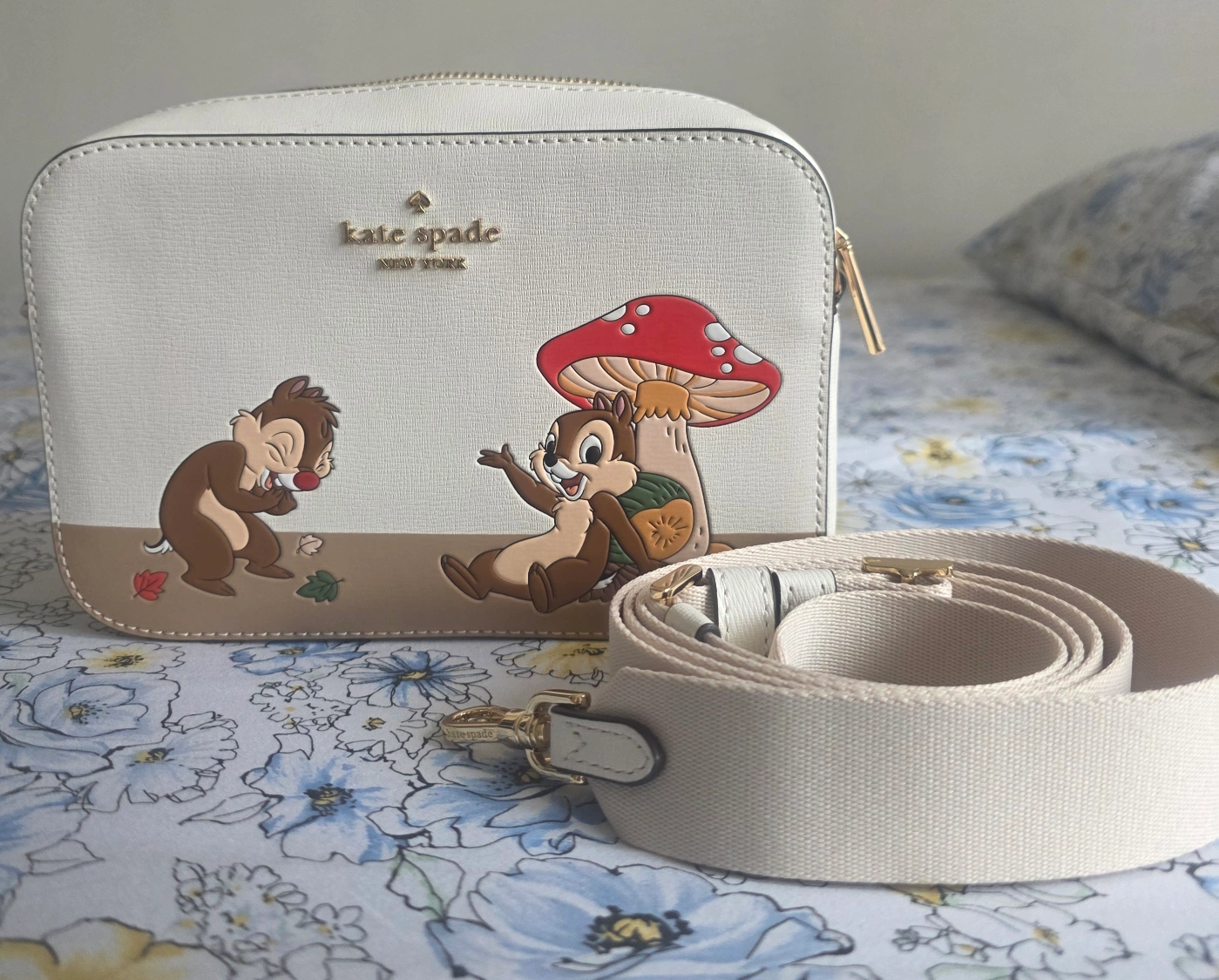 This is a Kate Spade New York crossbody bag featuring Chip and Dale. It comes with an adjustable strap. It's in great condition and ready for a new home!