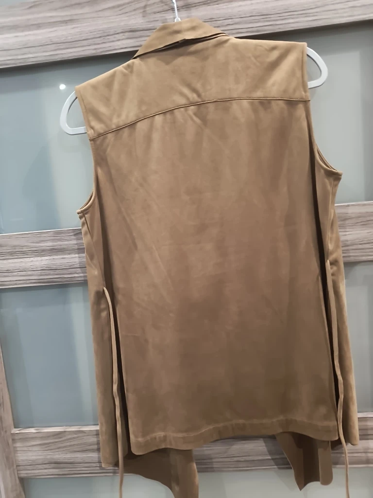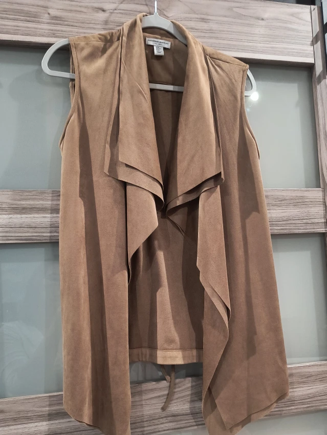 65Selling a Katherine Barclay Montreal vest in a beautiful suede material! It's a size medium and features a stylish, open-front design with a tie at the waist. Perfect for layering and adding a touch of elegance to any outfit