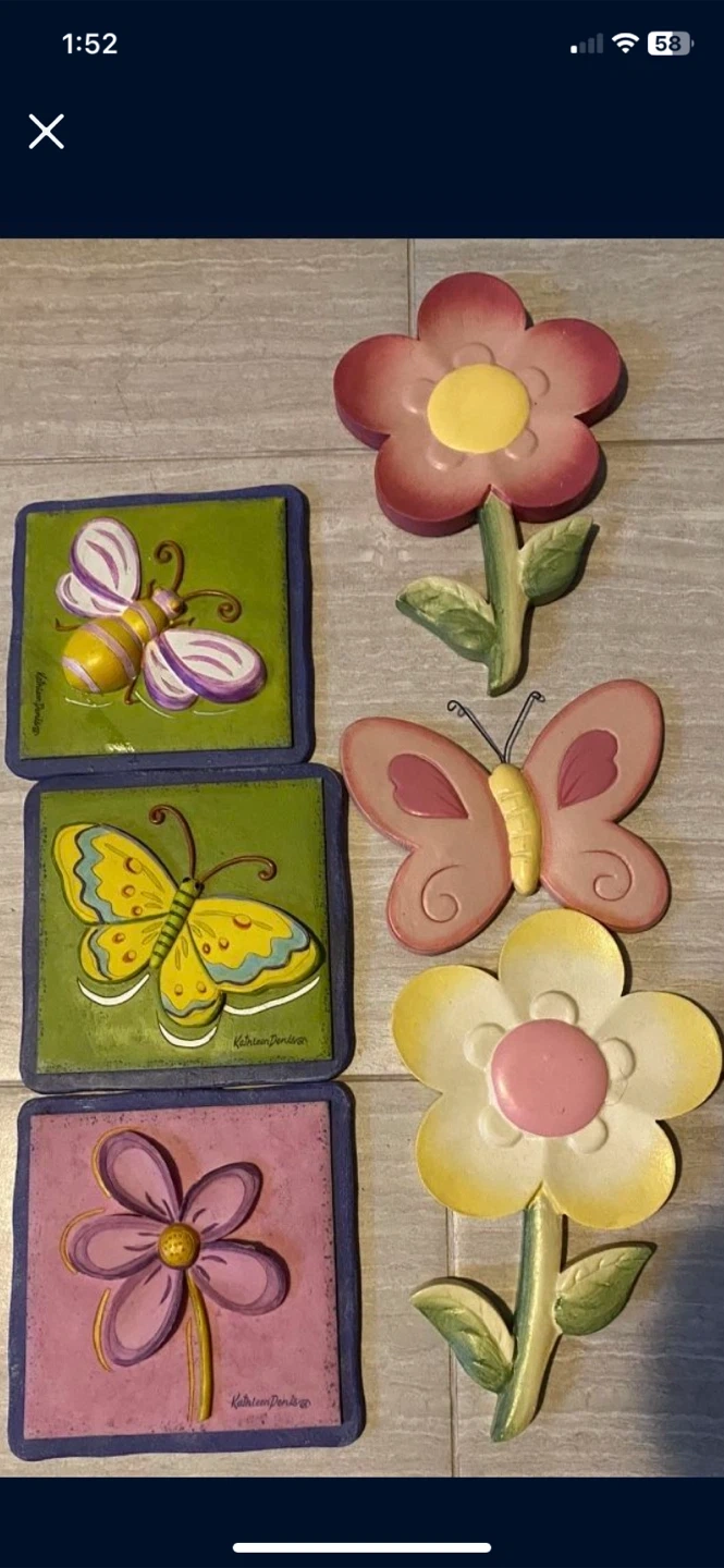 Cute set of Kathleen Denis wall decor featuring butterflies and flowers! Perfect for adding a touch of whimsy to any room. (6) pieces