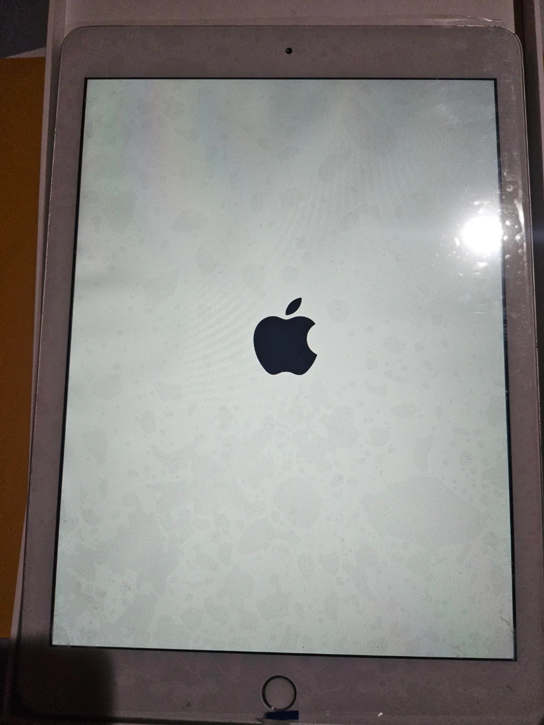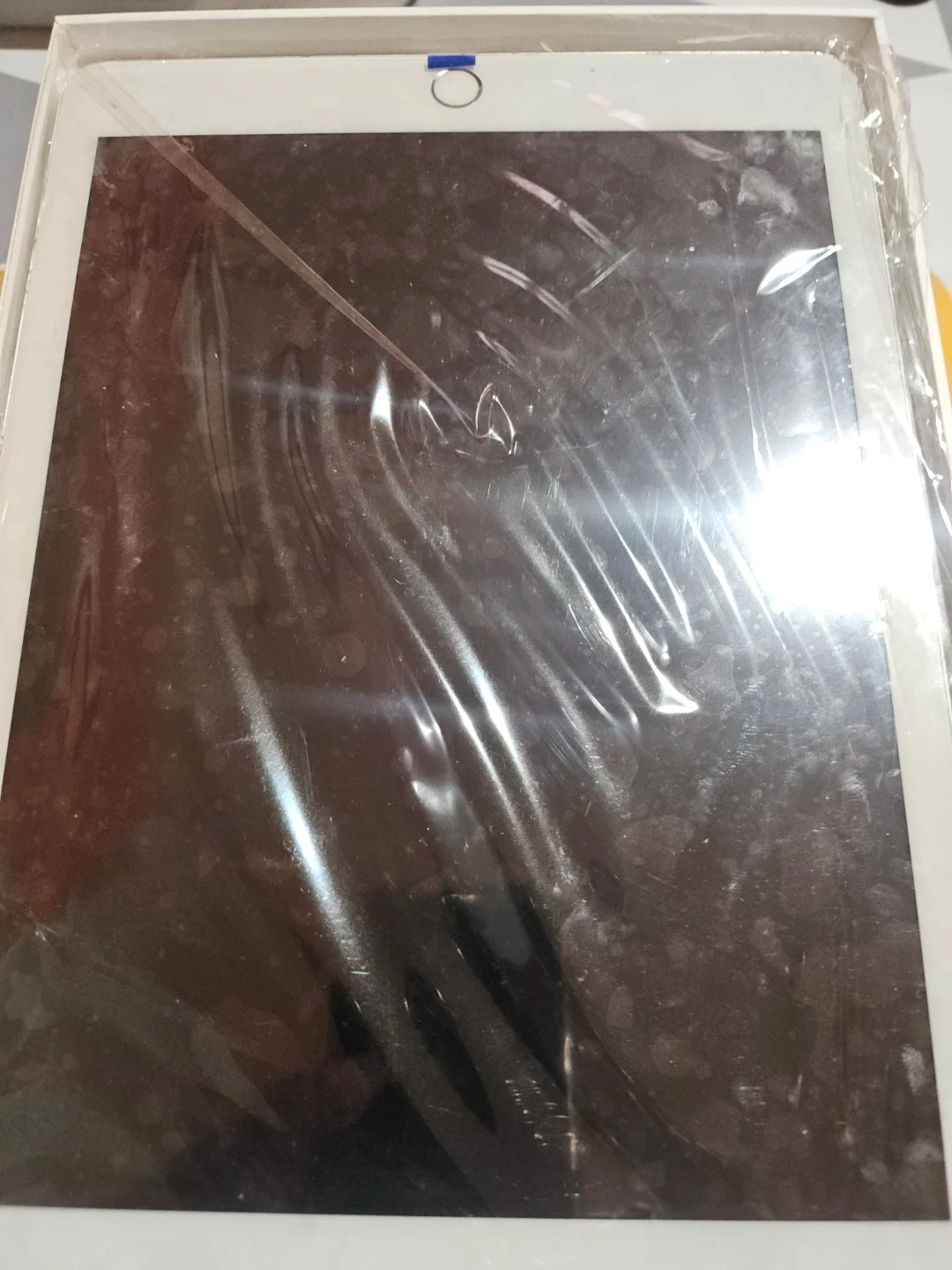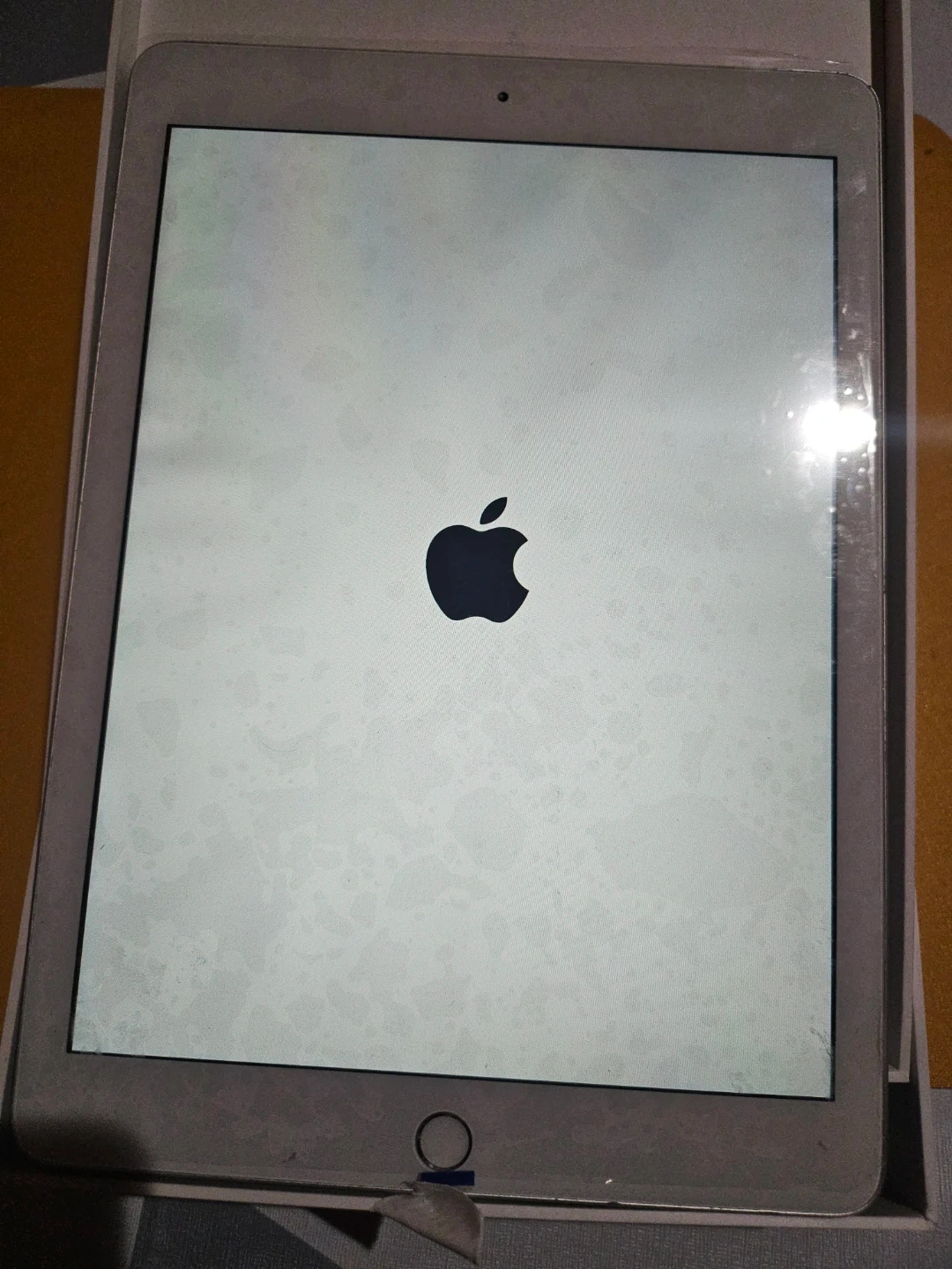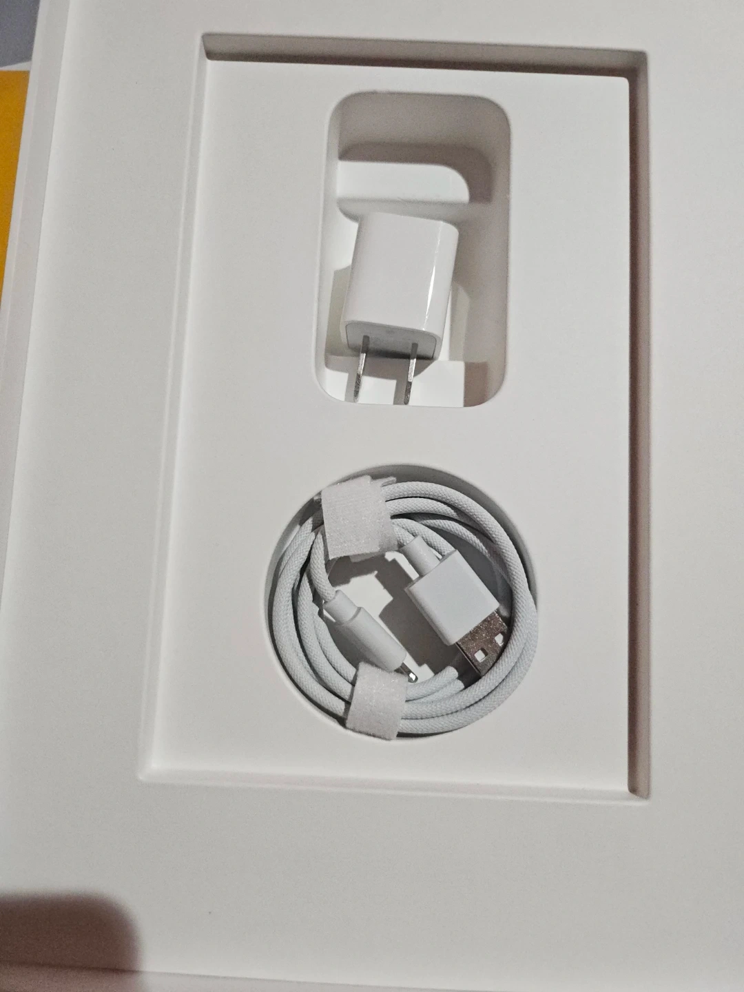 Apple iPad Mini in white. Includes a charging adapter and USB-C cable. Comes in original packaging.