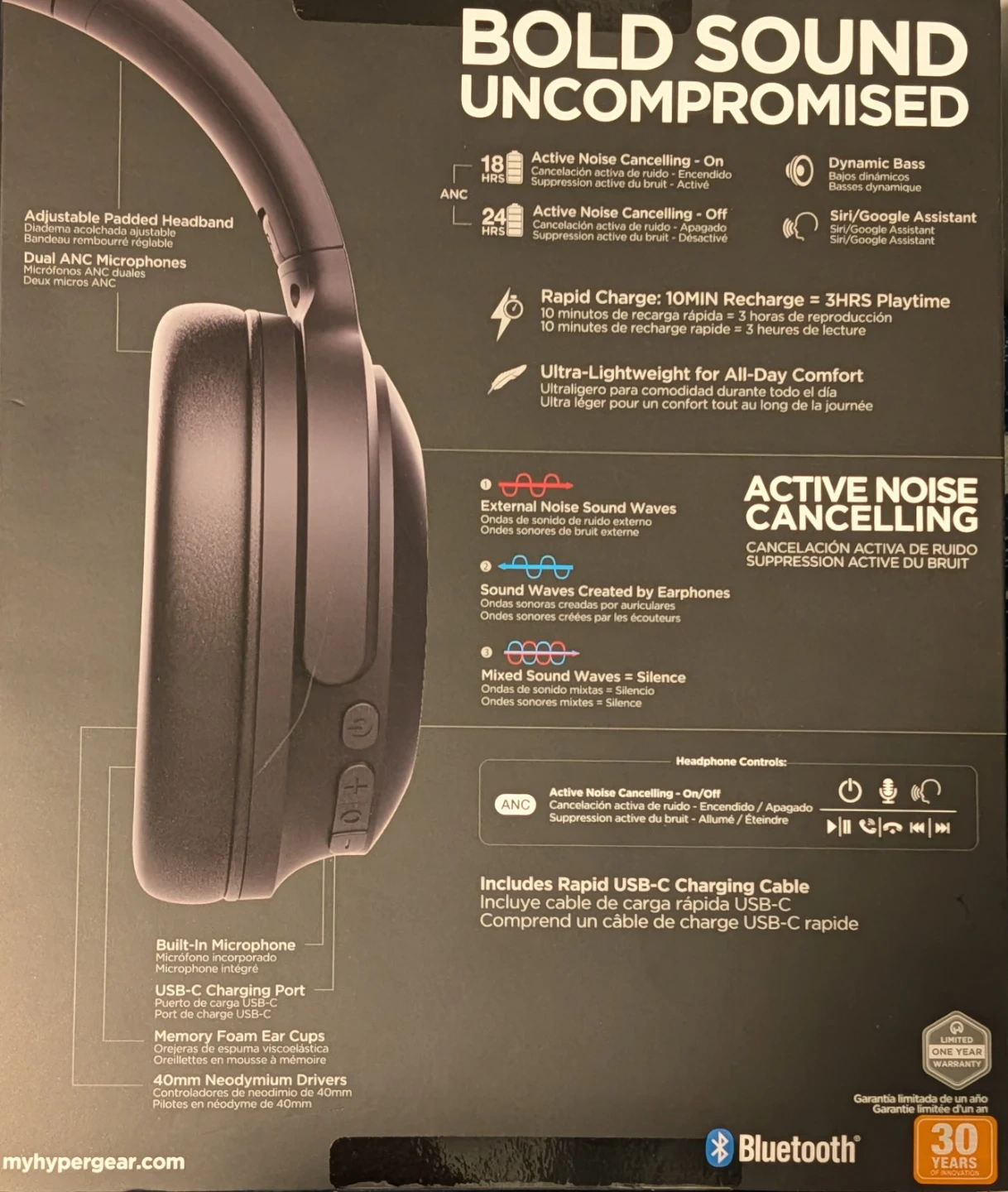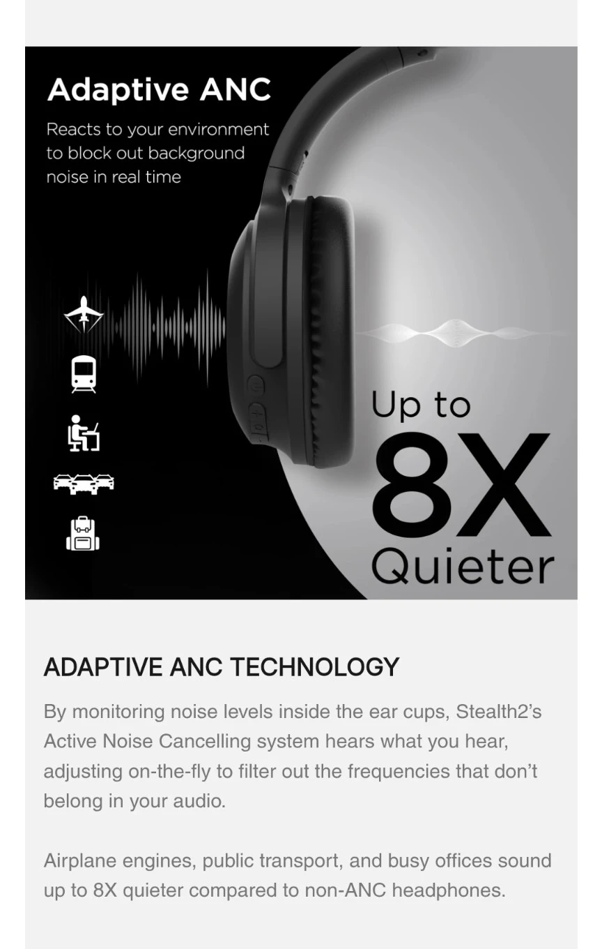 Hypergear Stealth2 ANC Wireless Headphones - Like New!