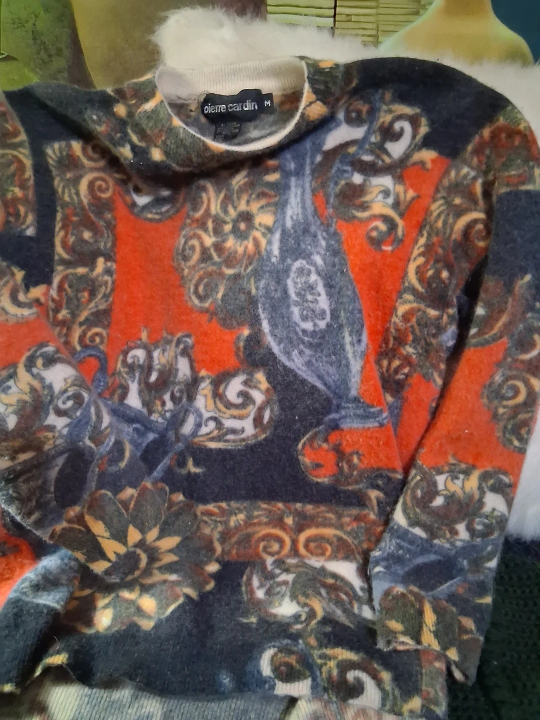 Selling a unique Pierre Cardin sweater! It's a size M and made from a blend of materials including: