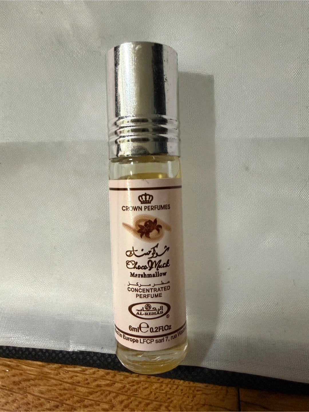 Al-Rehab concentrated perfume in Choco Muck scent. It's a marshmallow fragrance. The bottle contains 6ml (0.2 FL.oz) of perfume. Made in Europe.