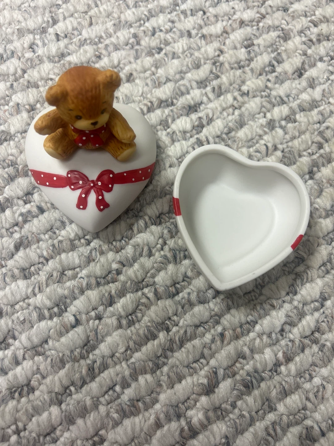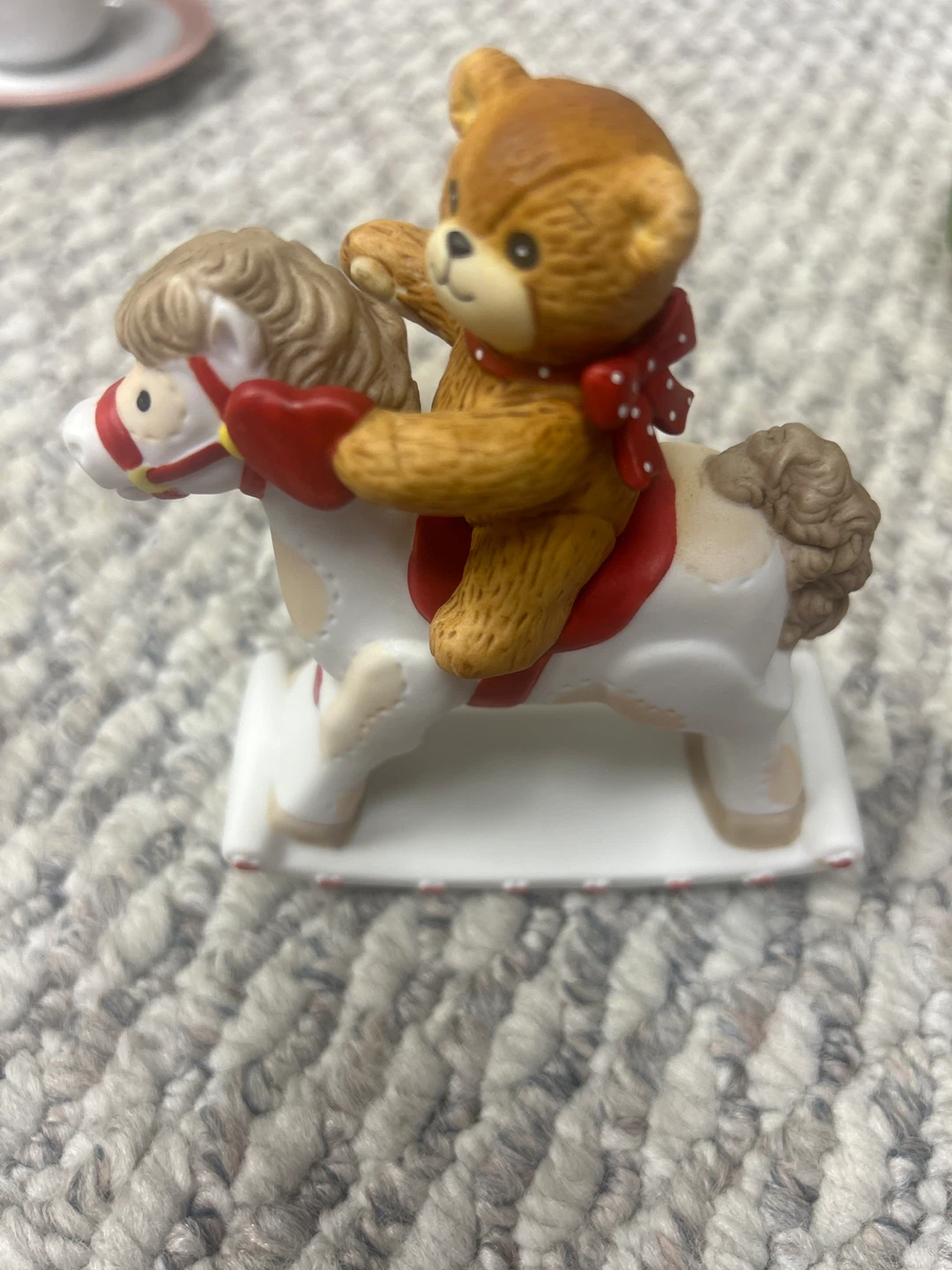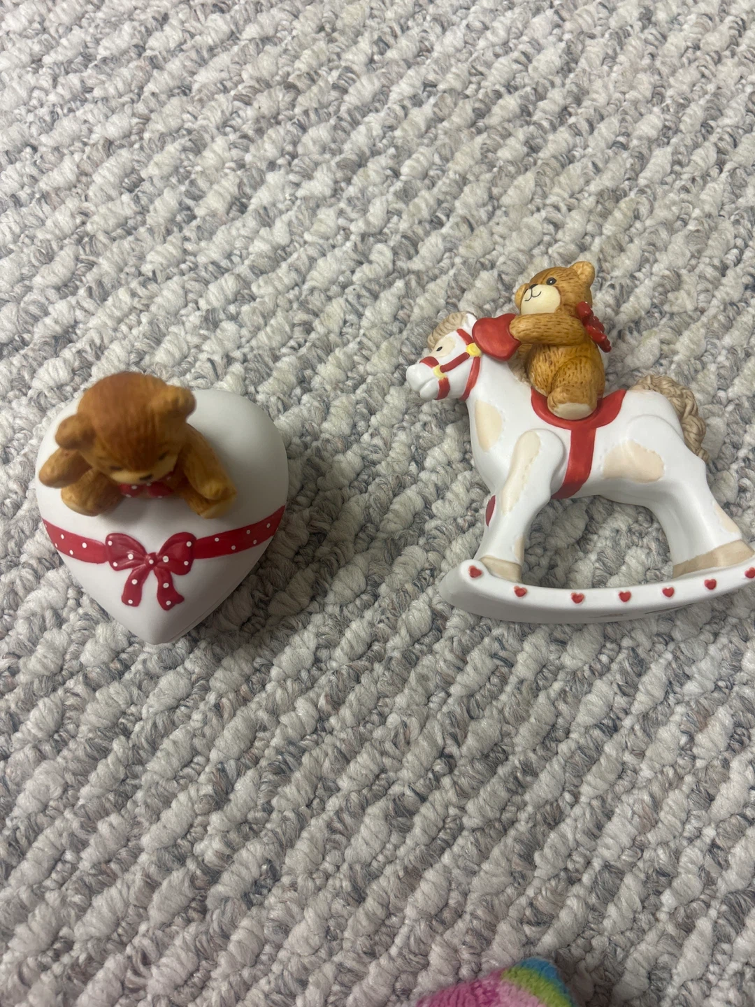 I'm selling two Enesco Precious Moments figurines. One is a teddy bear on a heart and the other is a teddy bear on a rocking horse. They are in great condition!