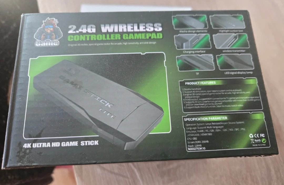 This 2.4G wireless controller gamepad offers a professional game chip and double rocker control. It connects to TV and supports classic games. It's also a 4K Ultra HD game stick.