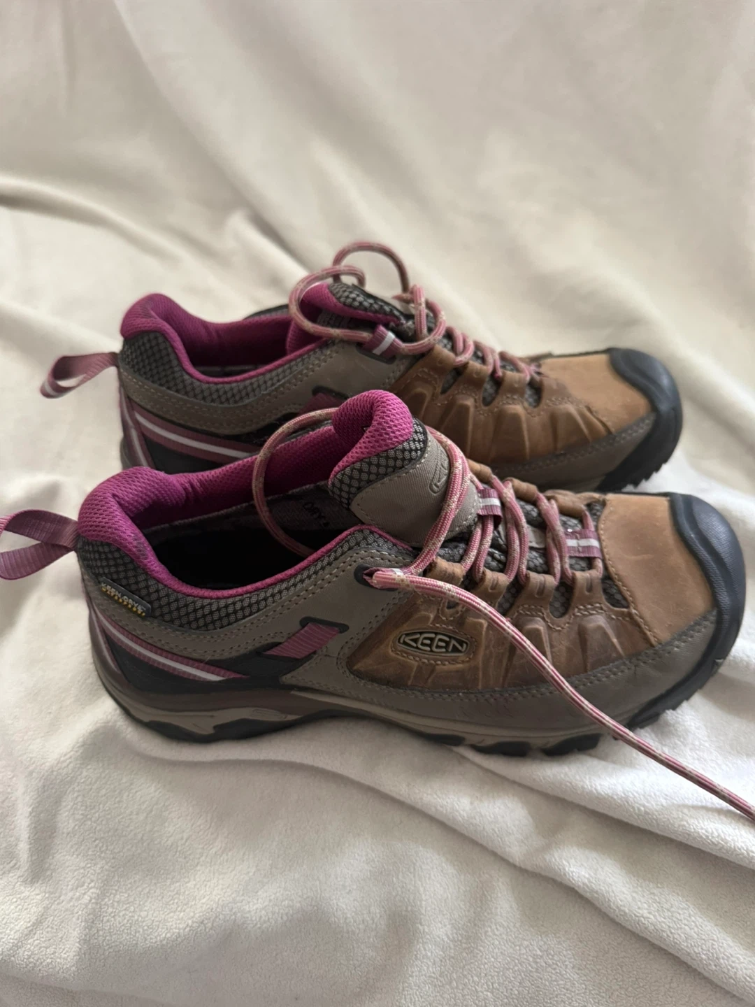 Selling a pair of Keen women's hiking shoes. They are waterproof and in good condition. Size: US 9