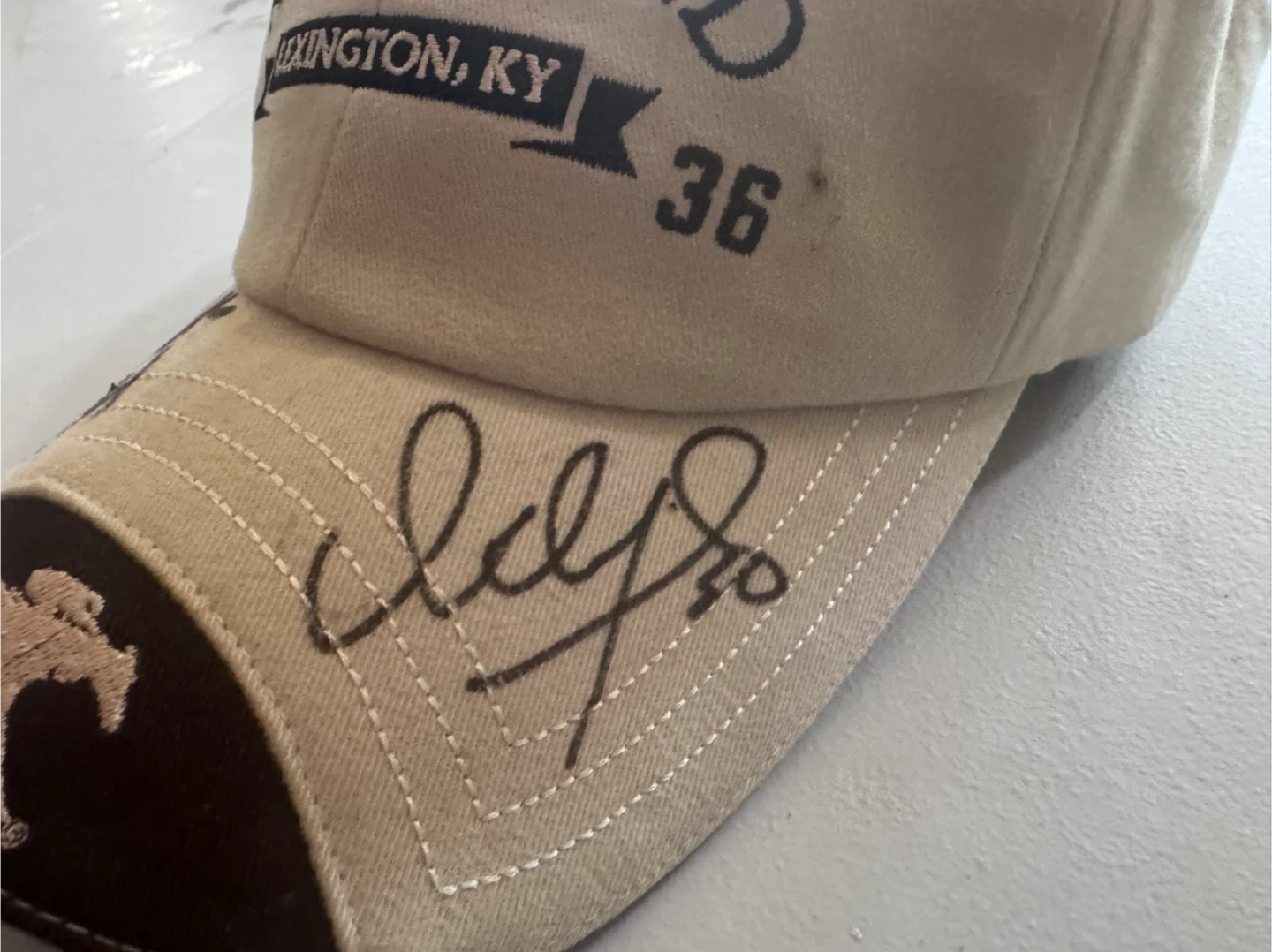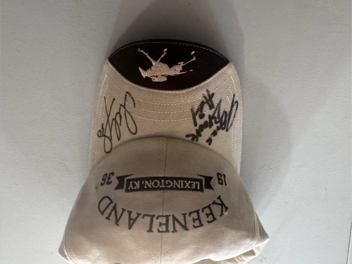 Selling an autographed Keeneland Lexington, KY cap. It features autographs from Icky Woods and James Brooks.