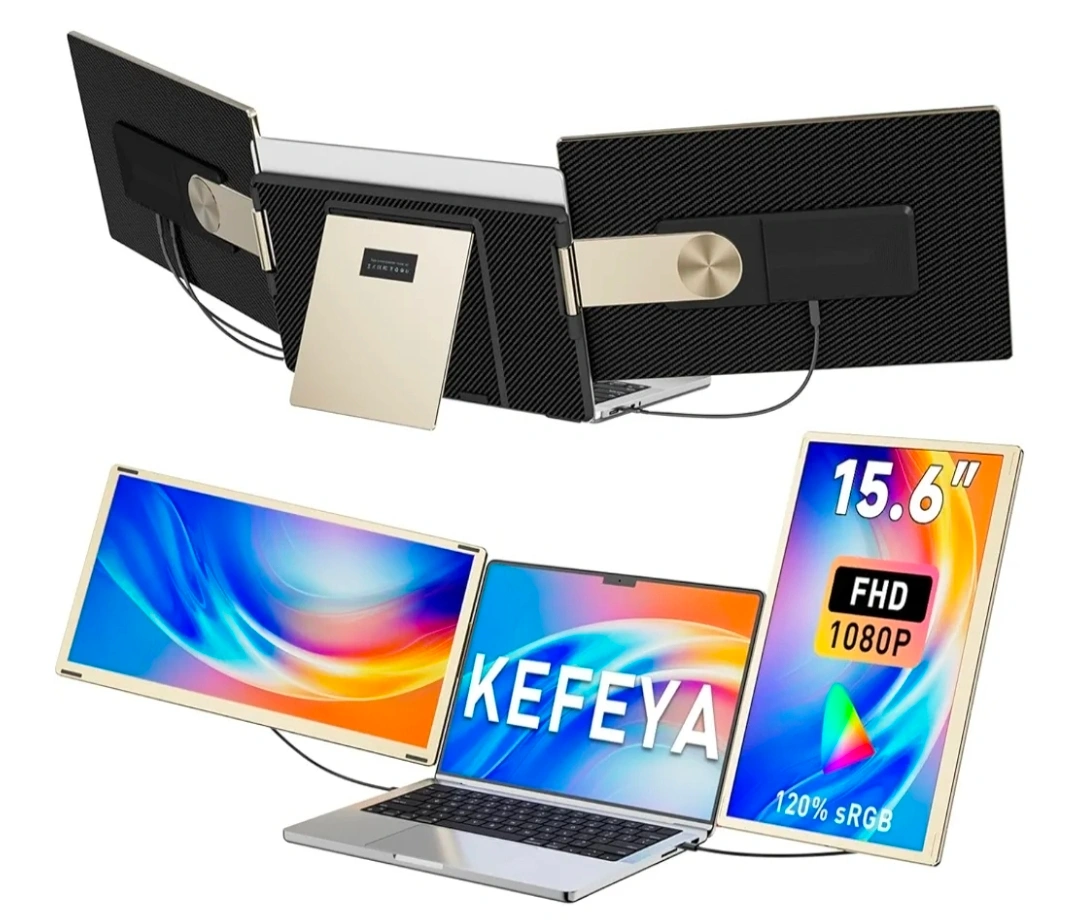 Get more done with this Kefeya portable laptop monitor! It's 15.6 inches and displays in FHD 1080P. It helps you multitask at the same time, saving time and increasing productivity up to 300%. It's also portable and removeable