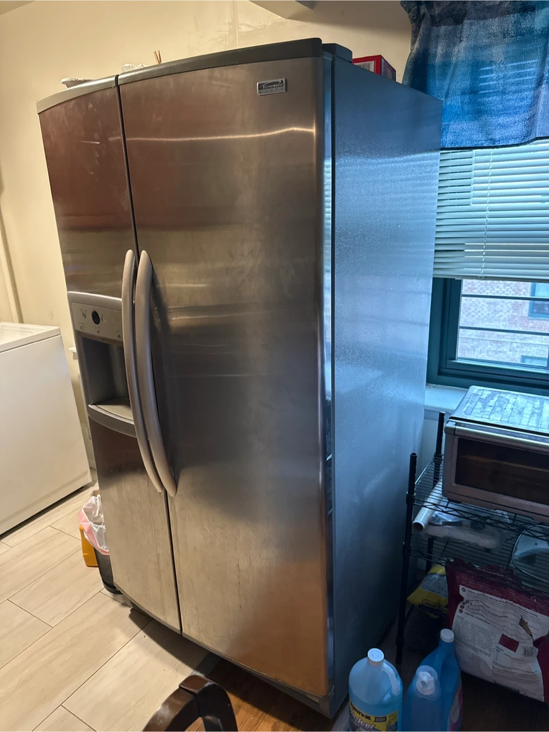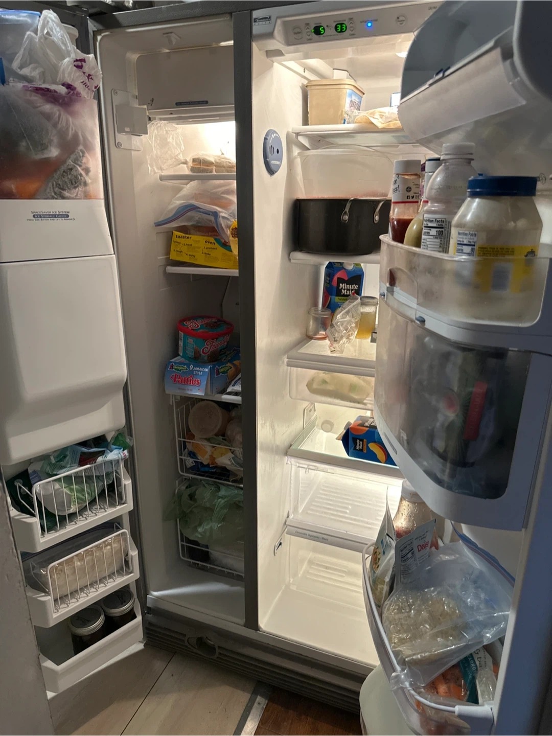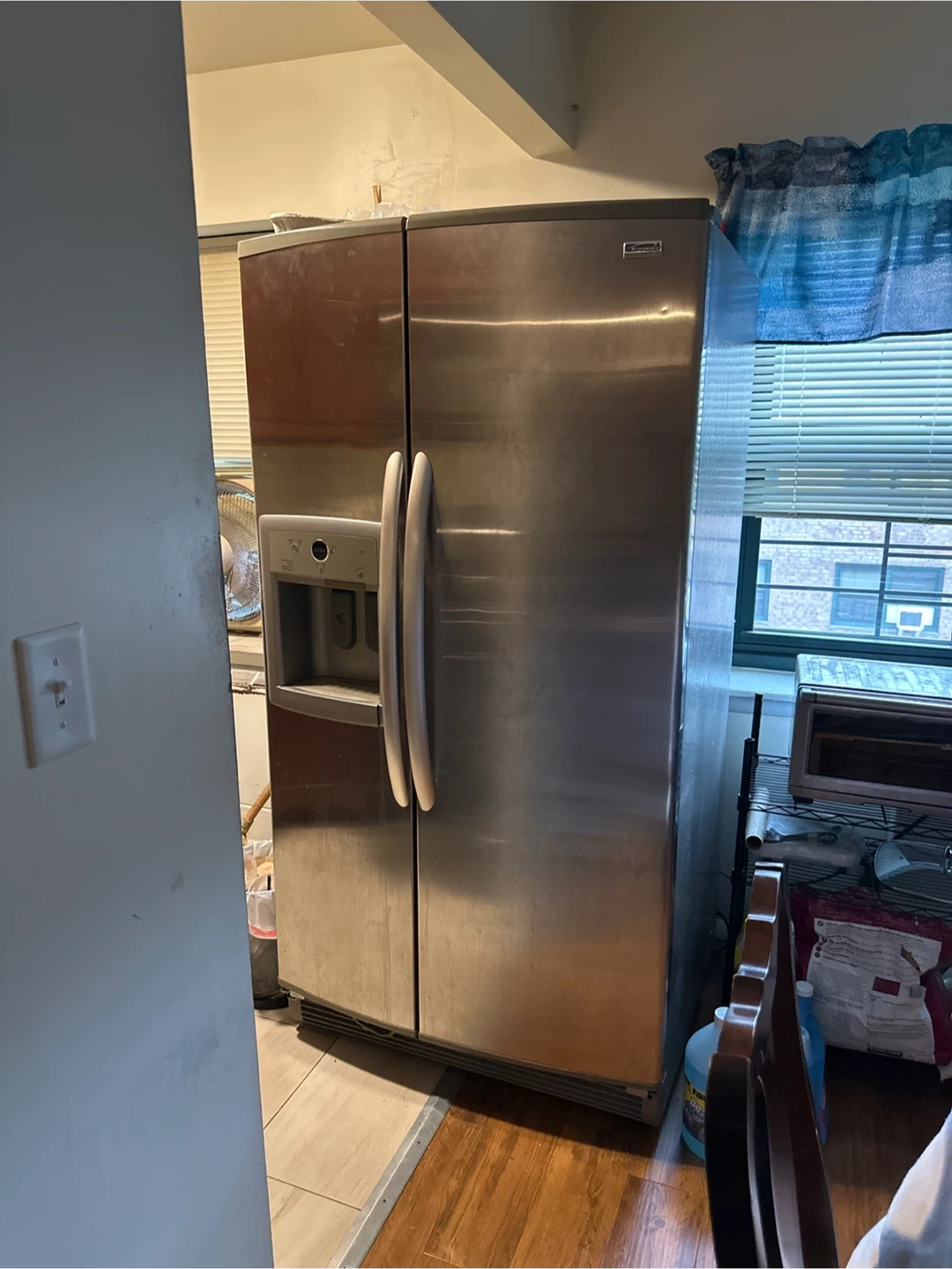 Selling a Kenmore side-by-side refrigerator. It's in used condition, but still works great! Perfect for a family or anyone needing extra fridge space. It has a water and ice dispenser on the door for easy access. Please take a look at the photos and let me know if you have any questions!
