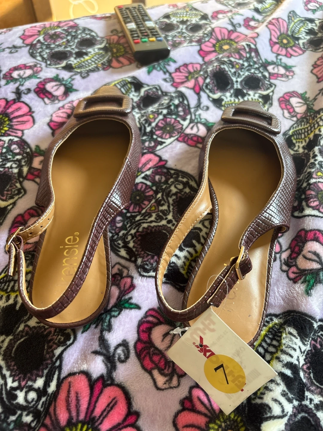65Cute Kensie brown slingback flats in a size 7. They have a buckle detail and are in great condition! The original tag from TJ Maxx is still attached, where they were compared at $36 and sold for $24.99