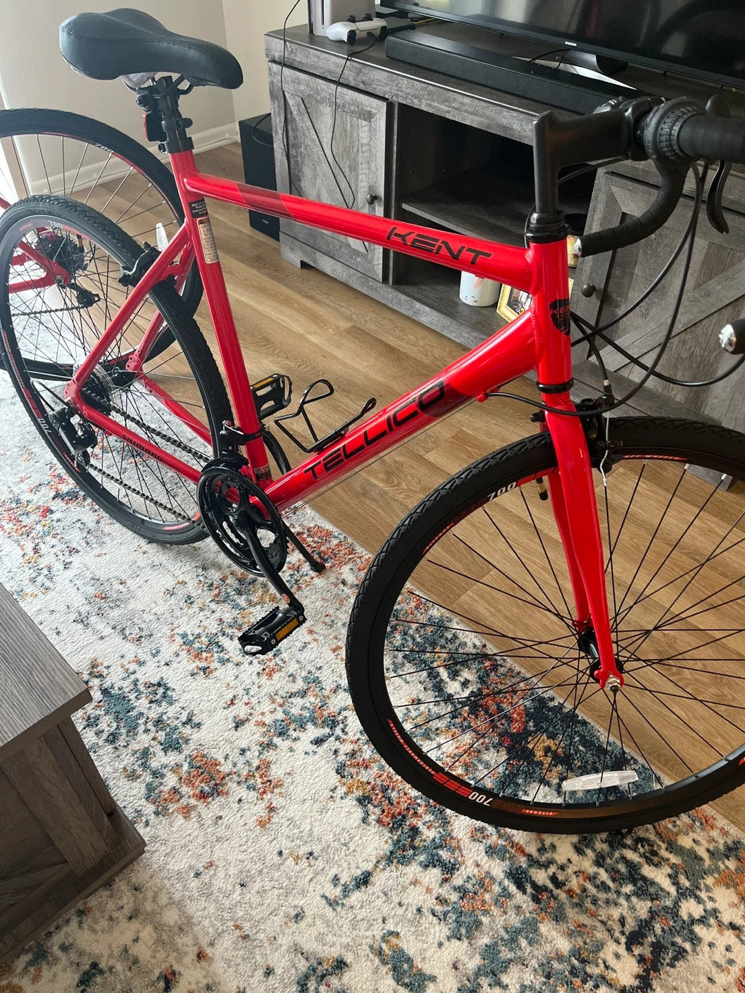 Selling a red Kent Tellico 700 road bike. It's in great shape never used and ready for some rides! The tires are 700c.