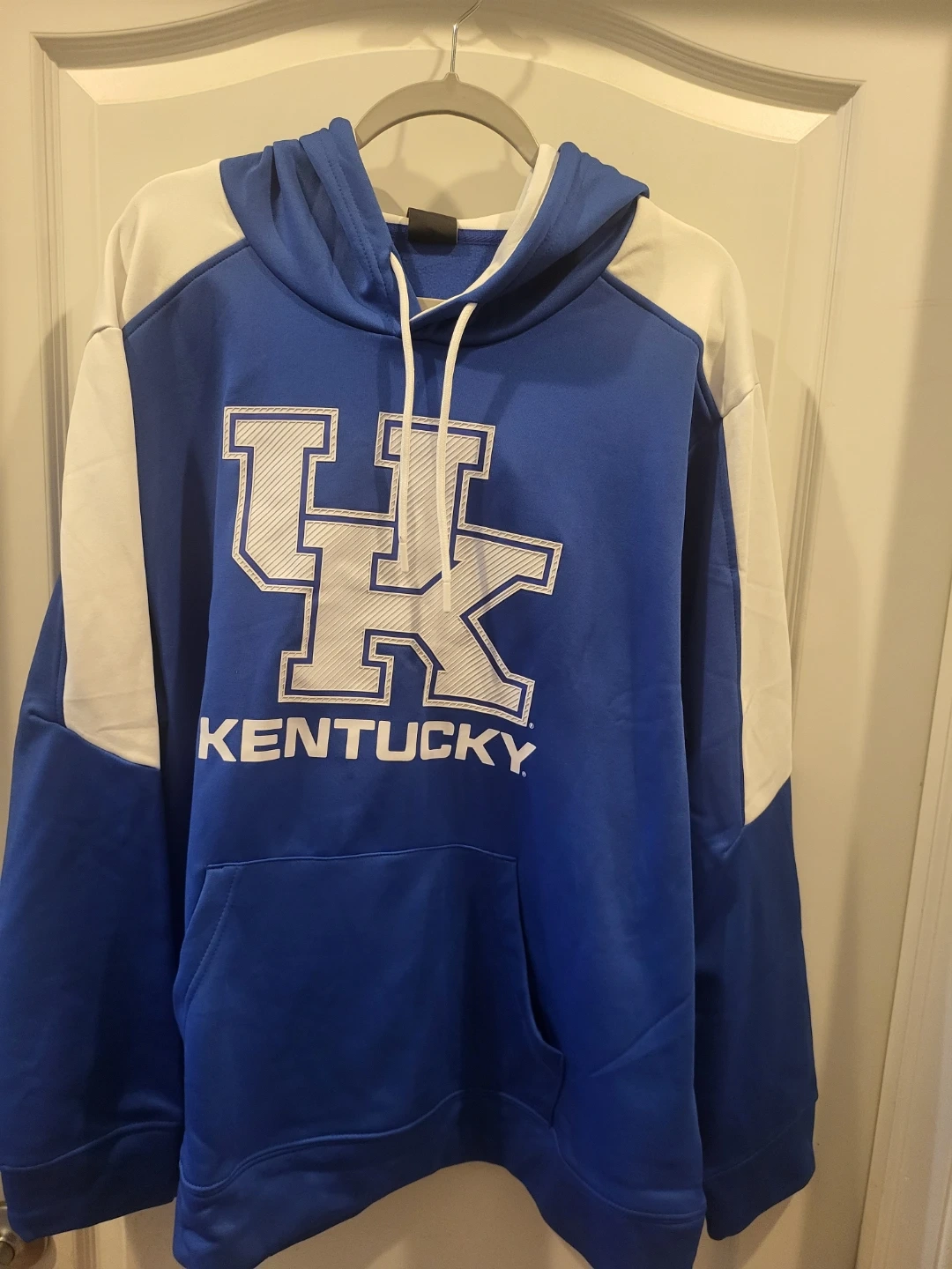 76Selling a Kentucky Wildcats hoodie in size XL! It's a vibrant blue and white color. The hoodie is in great condition and features the iconic 'UK' logo. Perfect for any Wildcats fan!
