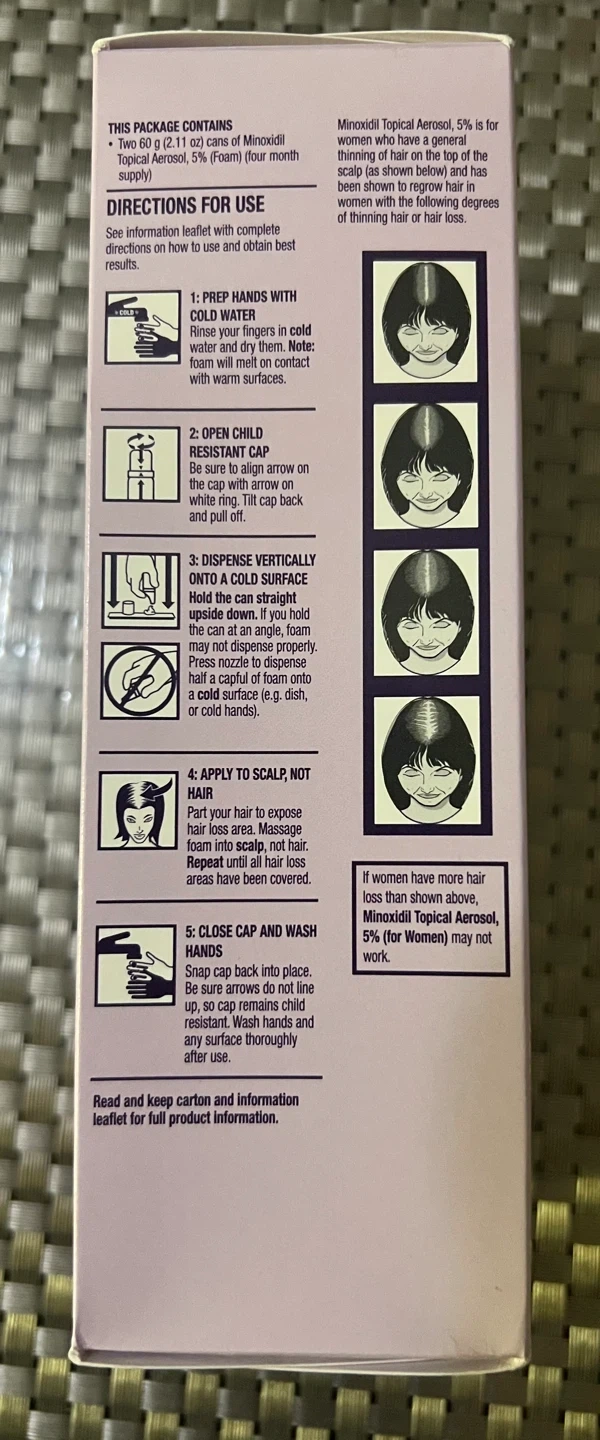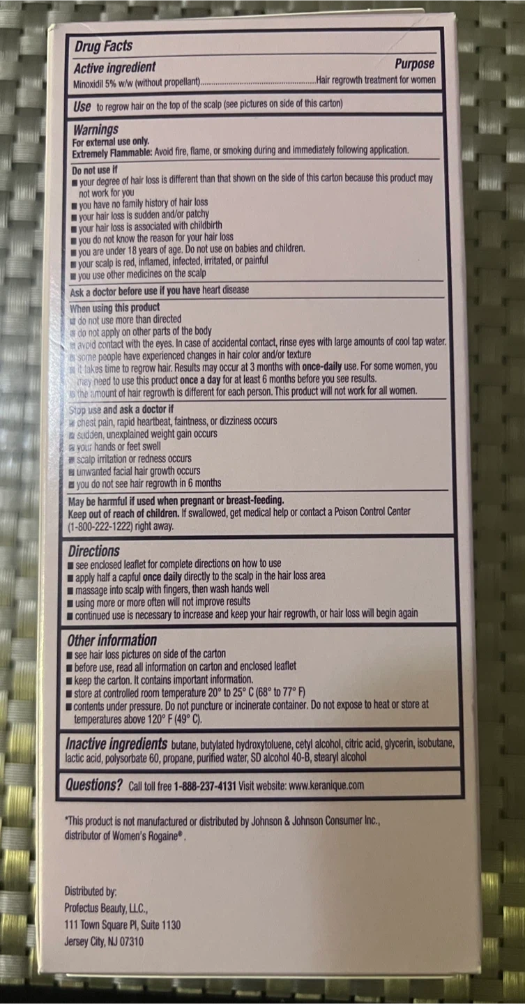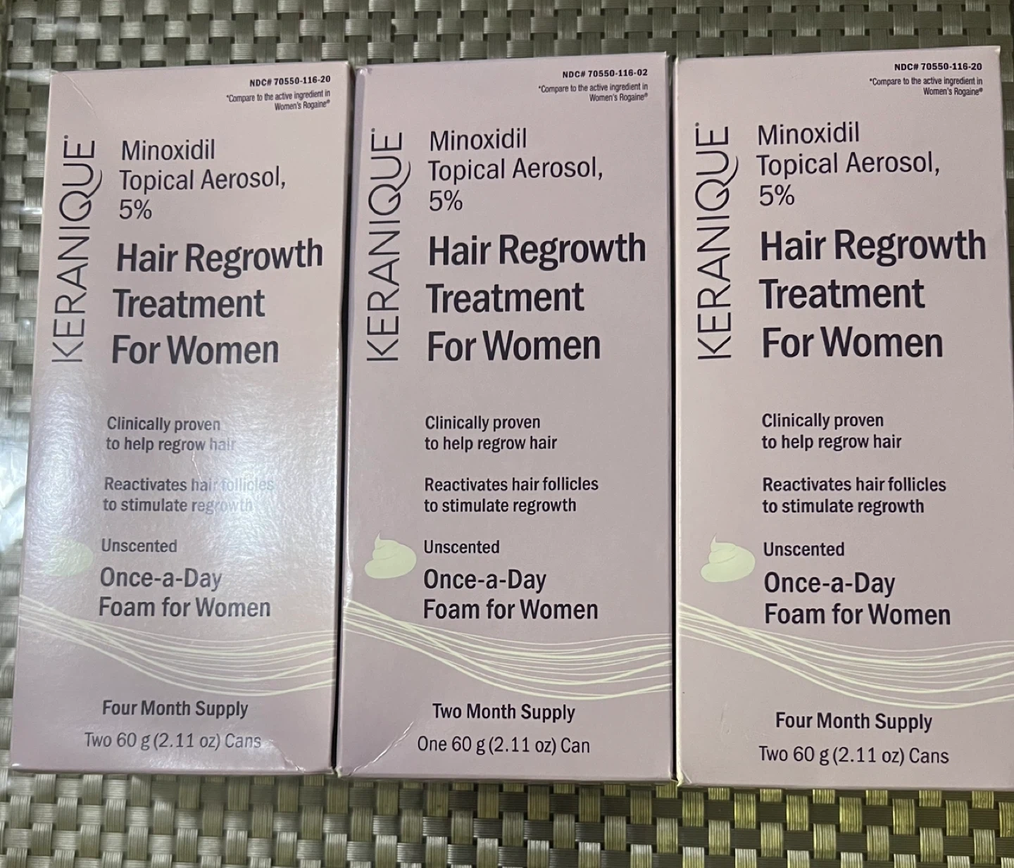 I'm selling Keranique Minoxidil Topical Aerosol, 5% Hair Regrowth Treatment For Women Clinically proven to help regrow hair Reactivates hair follicles to stimulate regrowth Unscented Once-a-Day Foam for Women Contains: Two 60 g (2.11 oz) Cans