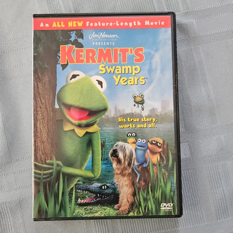 Selling a DVD of Kermit's Swamp Years, a Jim Henson Home Entertainment production! It's an all new feature-length movie that tells his true story, warts and all