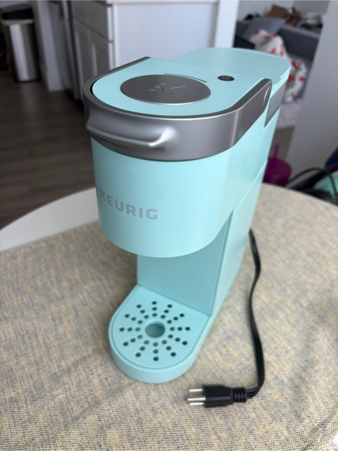 75Selling a Keurig K-Mini single serve coffee maker in the blue color! It's in great condition and perfect for small spaces. I switched to a different coffee maker, but this one still works and makes a great cup of coffee!