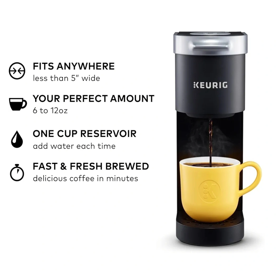 Selling a black Keurig K-Mini coffee maker! It's perfect for brewing a single cup of coffee quickly and easily. It fits anywhere, as it's less than 5" wide. Brews 6 to 12oz cups. Add water each time for a fast & fresh brewed coffee in minutes