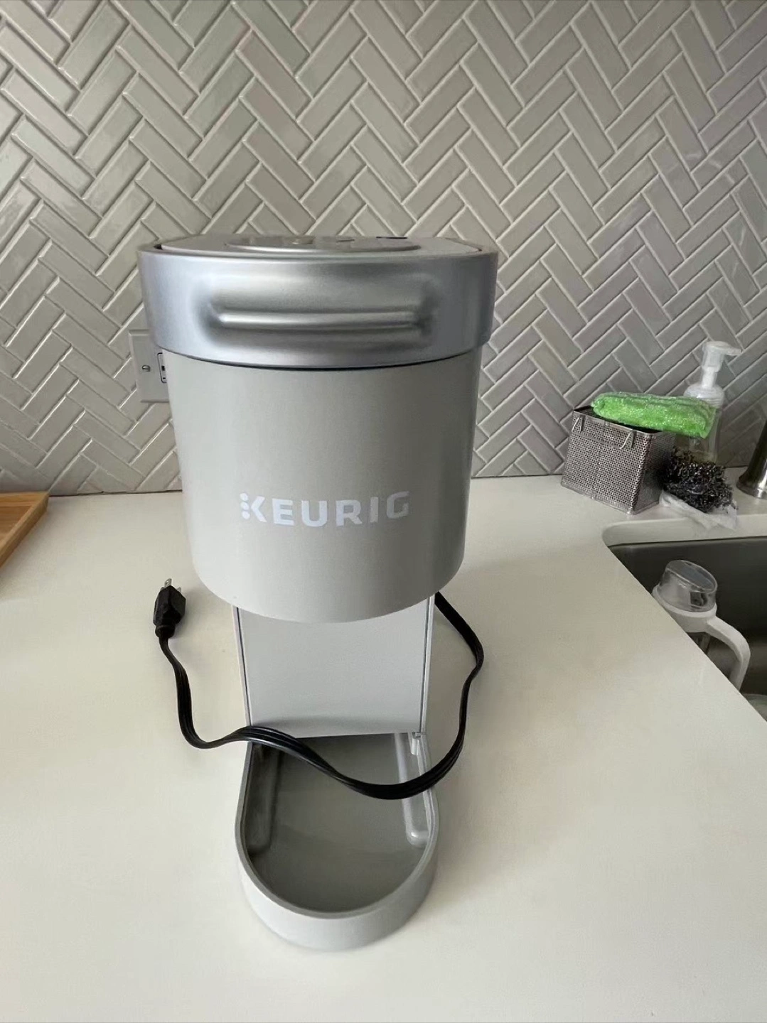 I'm selling a Keurig K-Mini coffee maker in gray. It's perfect for small spaces and brews a single cup at a time. It is in great condition and ready for a new home!