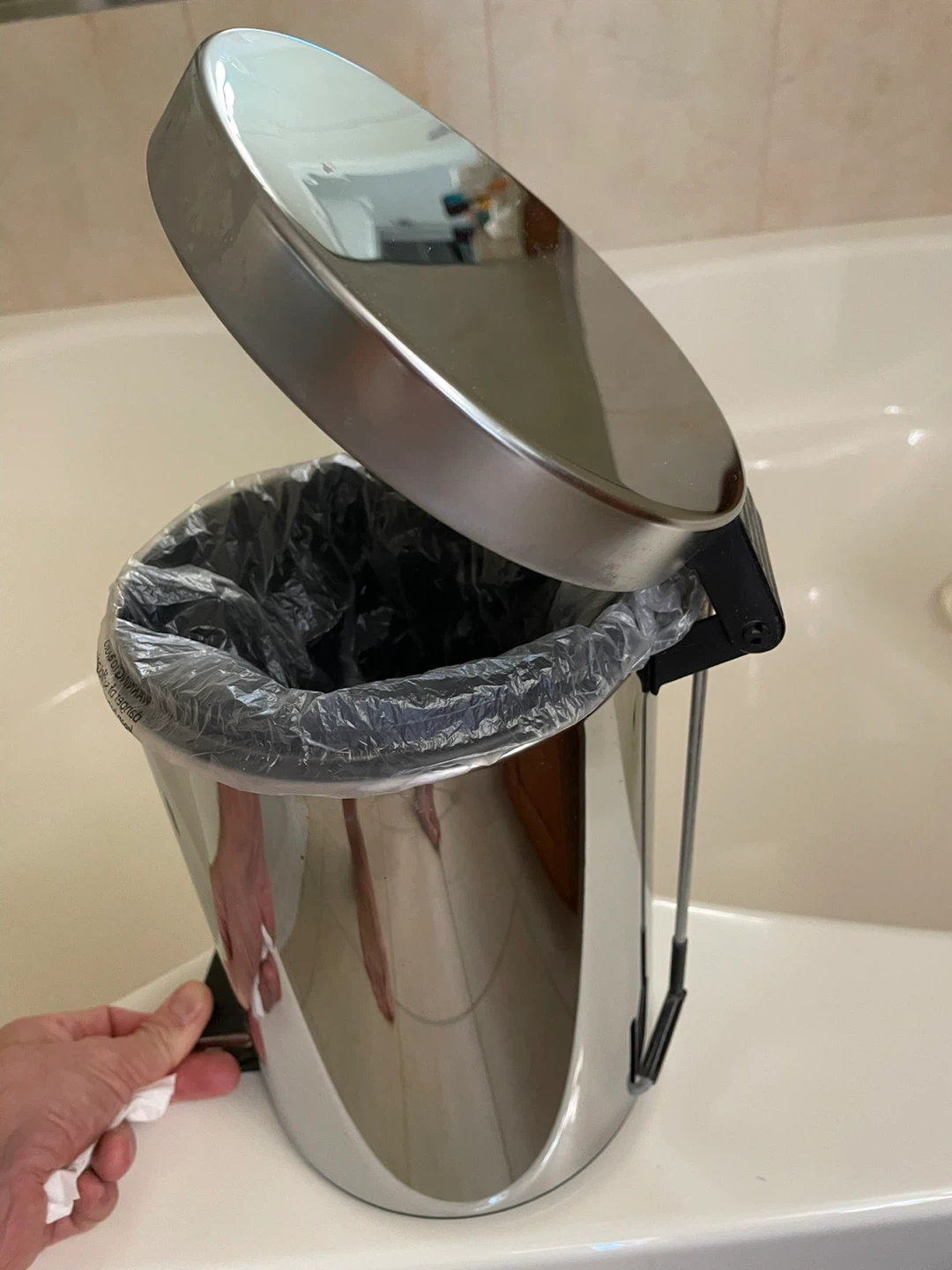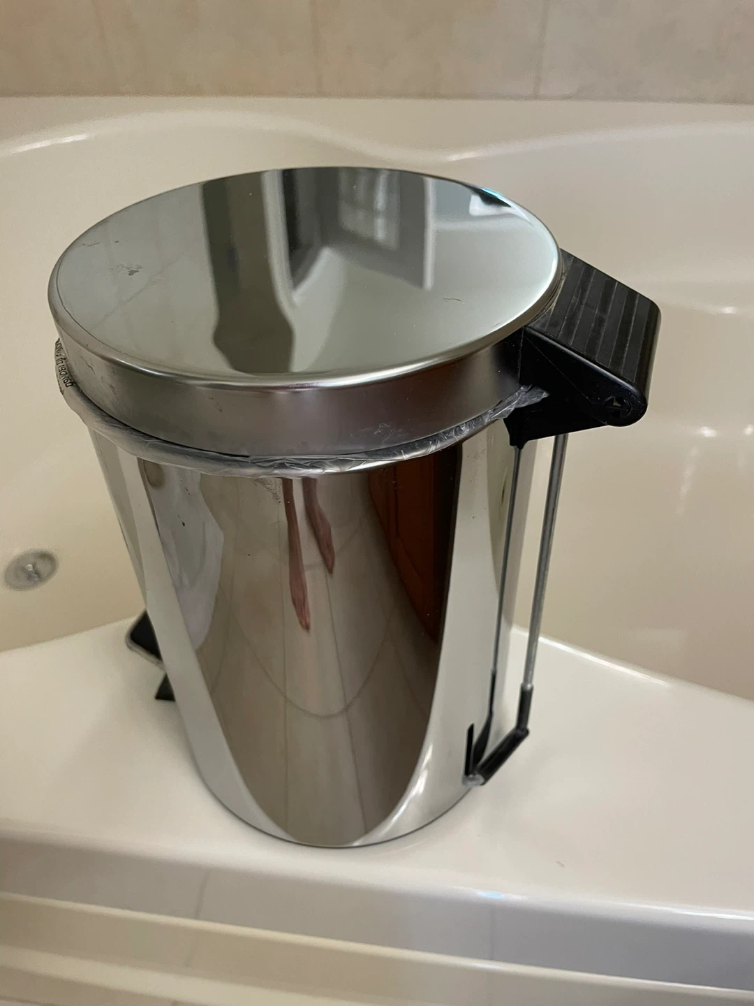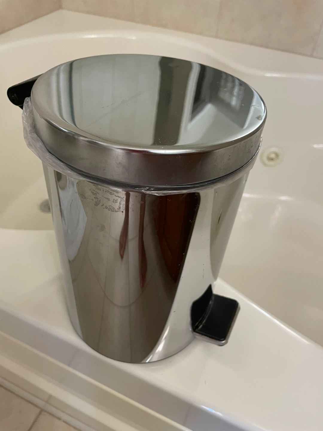 Selling a stainless steel step trash can. It has a convenient foot pedal for hands-free operation. The lid closes smoothly to contain odors. Perfect for bathrooms or small spaces!