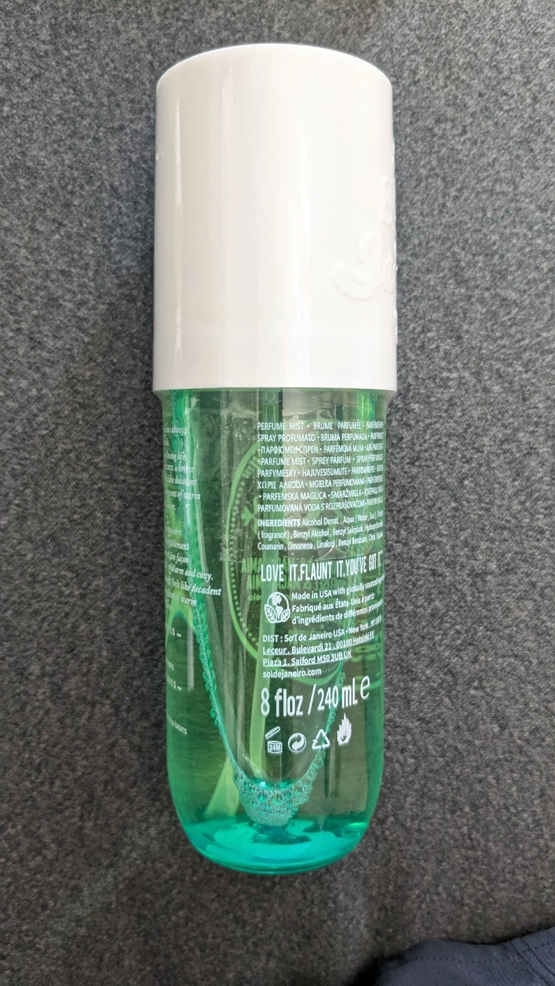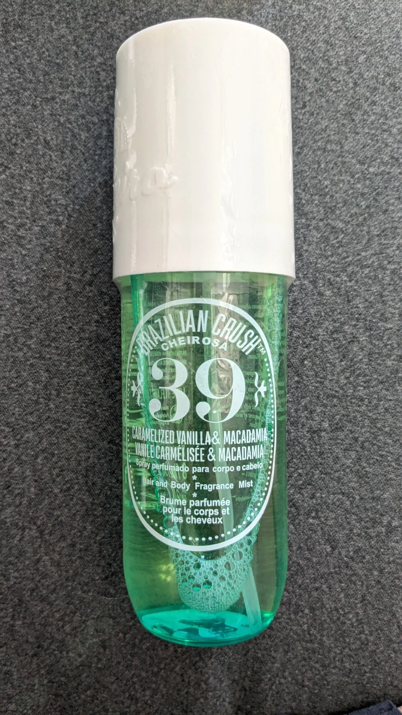 This is a Sol de Janeiro Brazilian Crush Cheirosa '39 Hair and Body Fragrance Mist. It's a caramelized vanilla & macadamia scent. 8 fl oz / 240 ml.