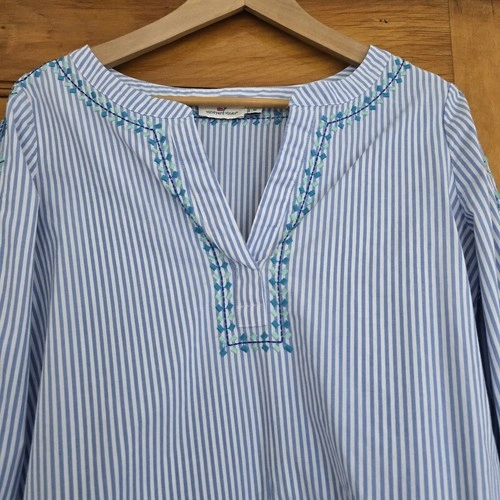 Vineyard Vines Blue & White Stripe Long Sleeve Tunic V Neck Top.