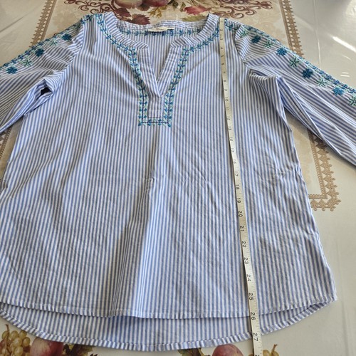 Vineyard Vines Blue & White Stripe Long Sleeve Tunic V Neck Top.