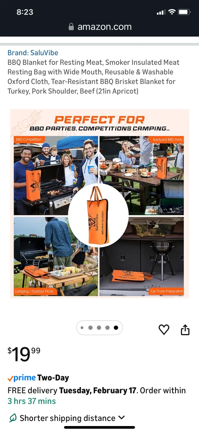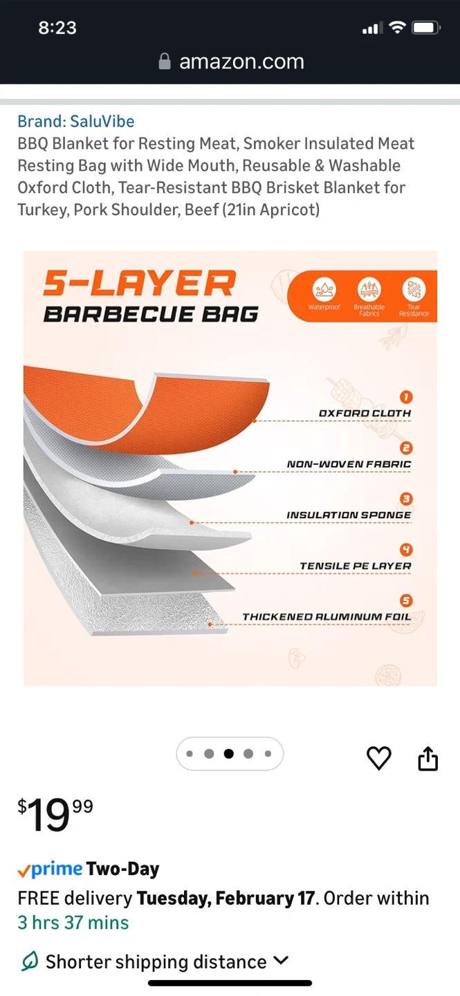 This is a SaluVibe BBQ meat resting bag. It's made with 5-layer insulation including Oxford cloth and thick aluminum foil. It's waterproof, easy to clean, and tear-resistant.