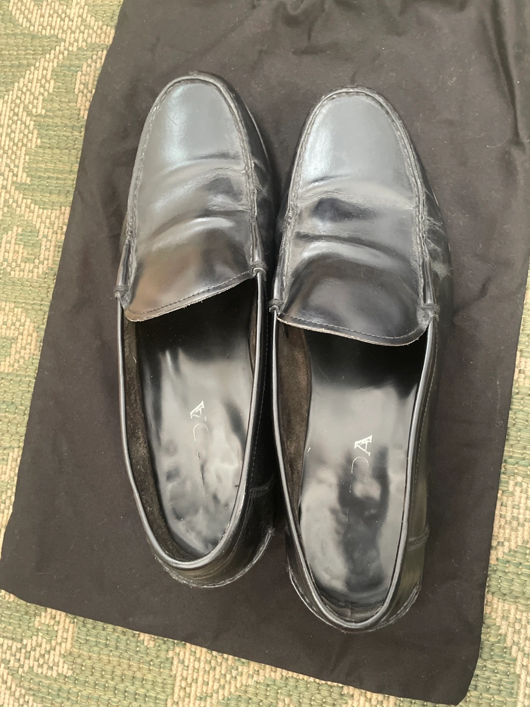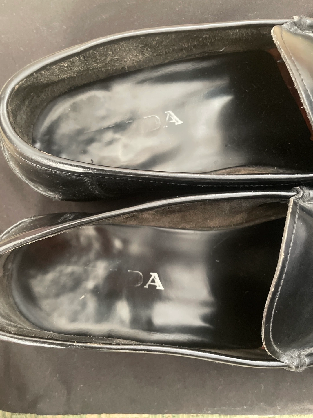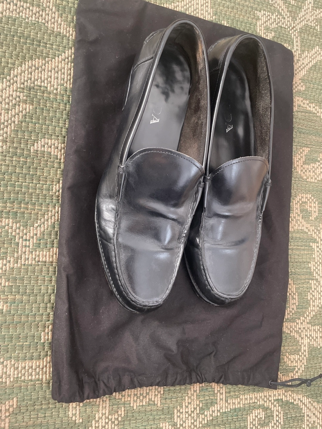 Pair of black leather Prada loafers. Slip-on style. Comes with dust bag. Good condition. Men’s size 10