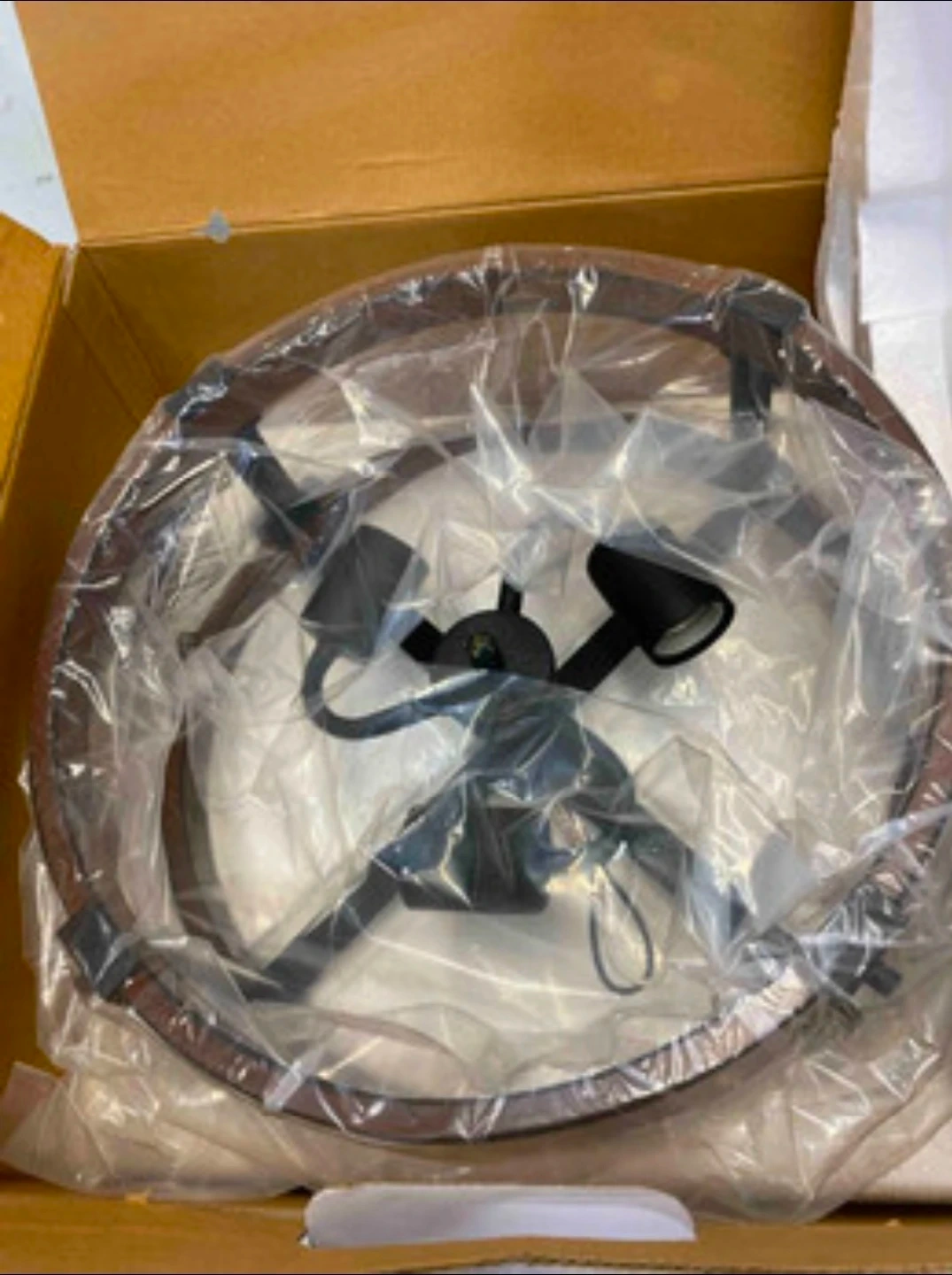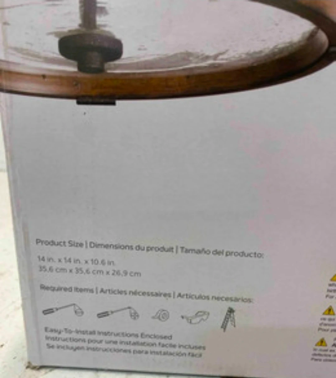 60new still in box Selling a Kichler Barrington semi-flush mount ceiling fixture. It features a distressed black and aged faux wood finish with clear seeded glass. The dimensions are 14 in x 14 in x 10.6 in. Easy-to-install instructions are included