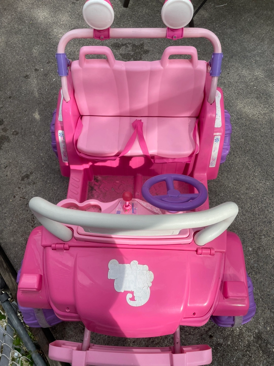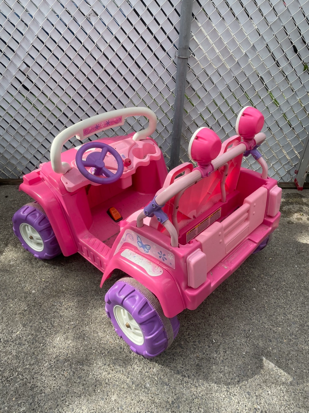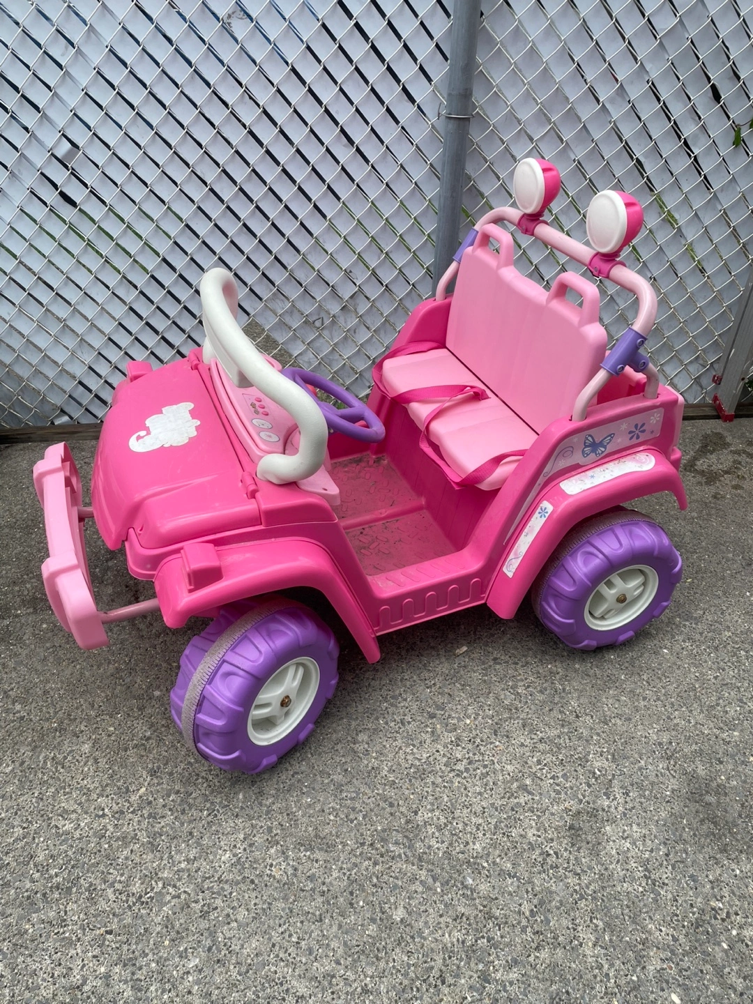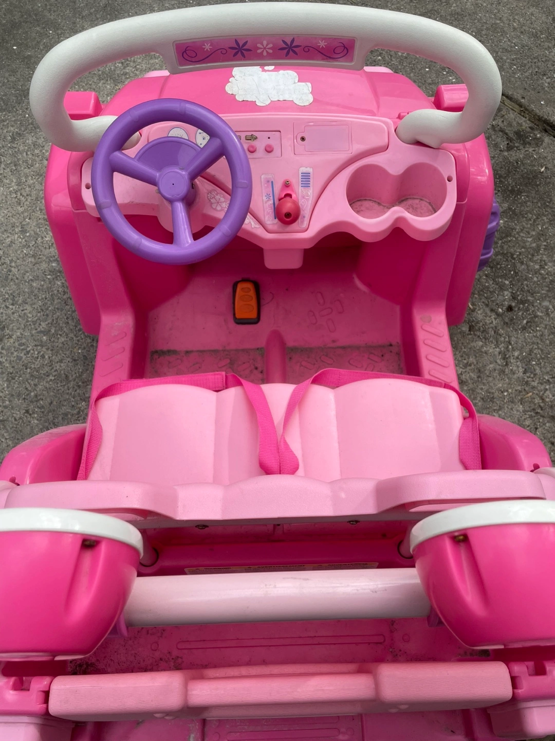 Kid Motorz 12V Surfer Girl 4x4 Electric Ride On - Pink Just needs a quick wipe down by the feet area/cup holders and this car is a solid, reliable ride. The battery is strong and comes with charger. Retails for over $800. Good quality. Located in Staten Island, NY 10312. Local delivery available for an additional charge. Forward and reverse gears for driving around the backyard or neighborhood. Maximum speed of 5 MPH for thrilling rides. Glowing dashboard with lighted indicators and musical sounds. Seats 2 kids comfortably for a fun-filled ride Convenient drop-down tailgate for added versatility. Storage area to carry toys, snacks, and other essentials. Age Level: 3-6 Years Brand: Kid Motorz Dimensions (Overall): 36.0 Inches (H) x 33.0 Inches (W) x 40.5 Inches (D) Weight: 60.0 Pounds Maximum Speed: 5 miles per hour Material: Metal, Plastic Holds up to: 130.0 Pounds