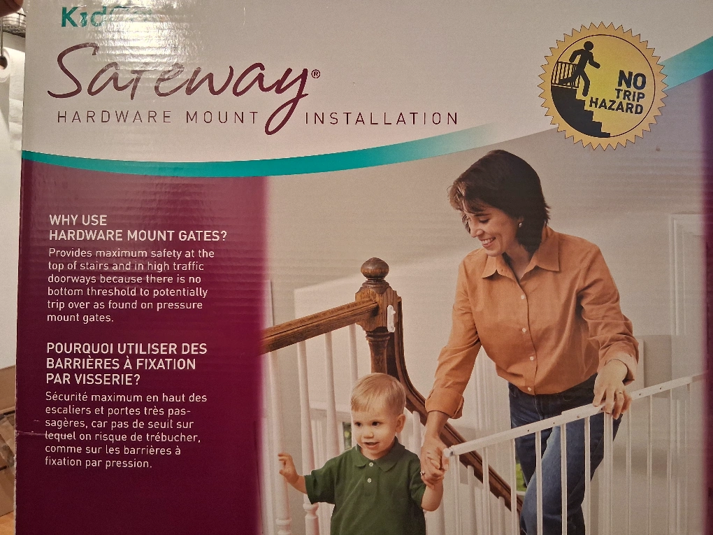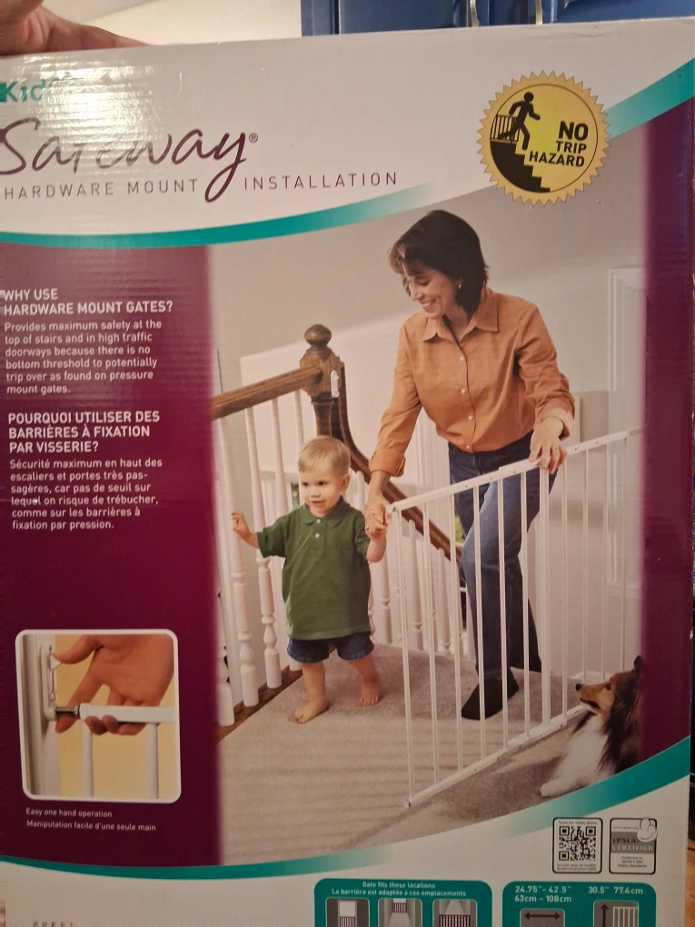 73Selling a KidCo Safeway hardware mount installation gate. It's designed for maximum safety at the top of stairs and in high-traffic doorways. The gate fits locations 24.75" - 42.5" (63cm - 108cm) and is 30.5" (724cm) tall. Easy one-hand operation!