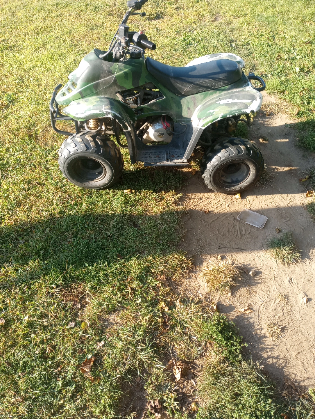 Selling a kids ATV in camouflage colors. It shows some signs of use but is still in good condition for some fun rides!
