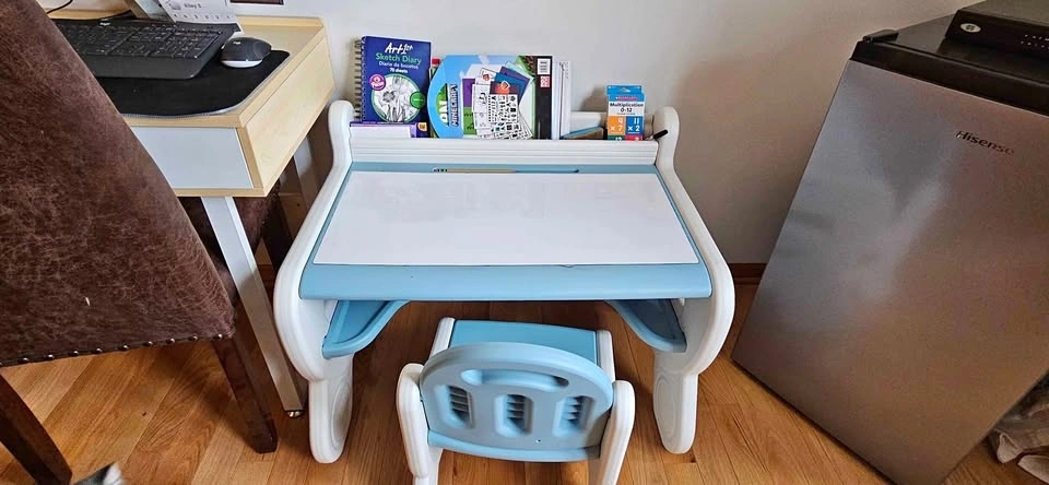 Kids desk, barely used. Some markings on the plastic part but dry erase part is in new condition. Asking $35 OBO. Dimensions are in photos. Pick up near Addison & Cumberland in Chicago 60634.