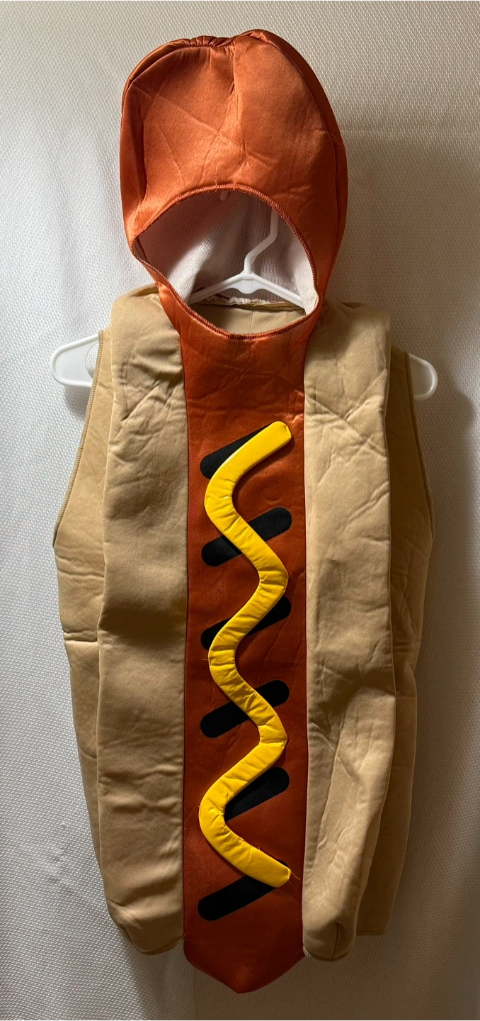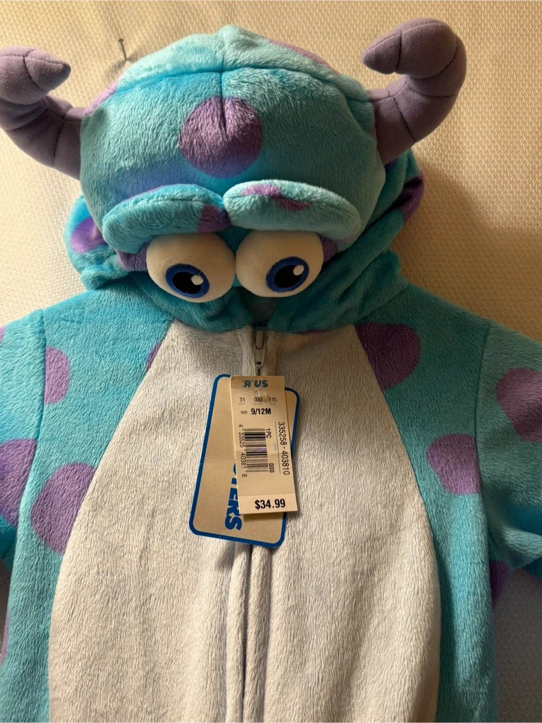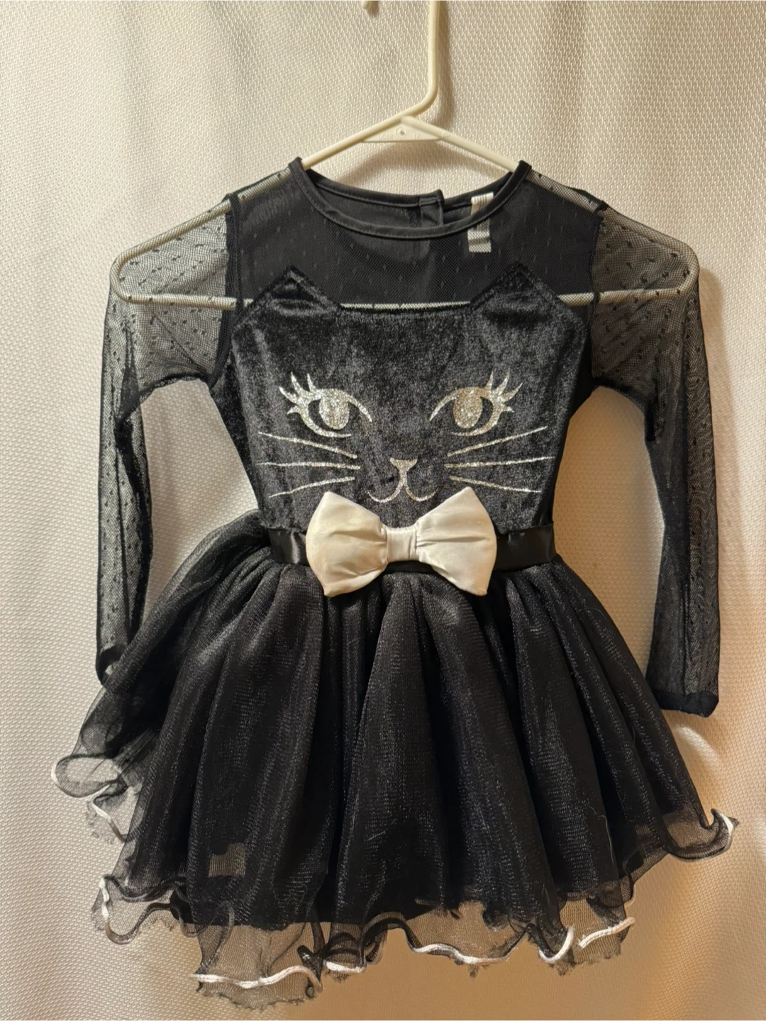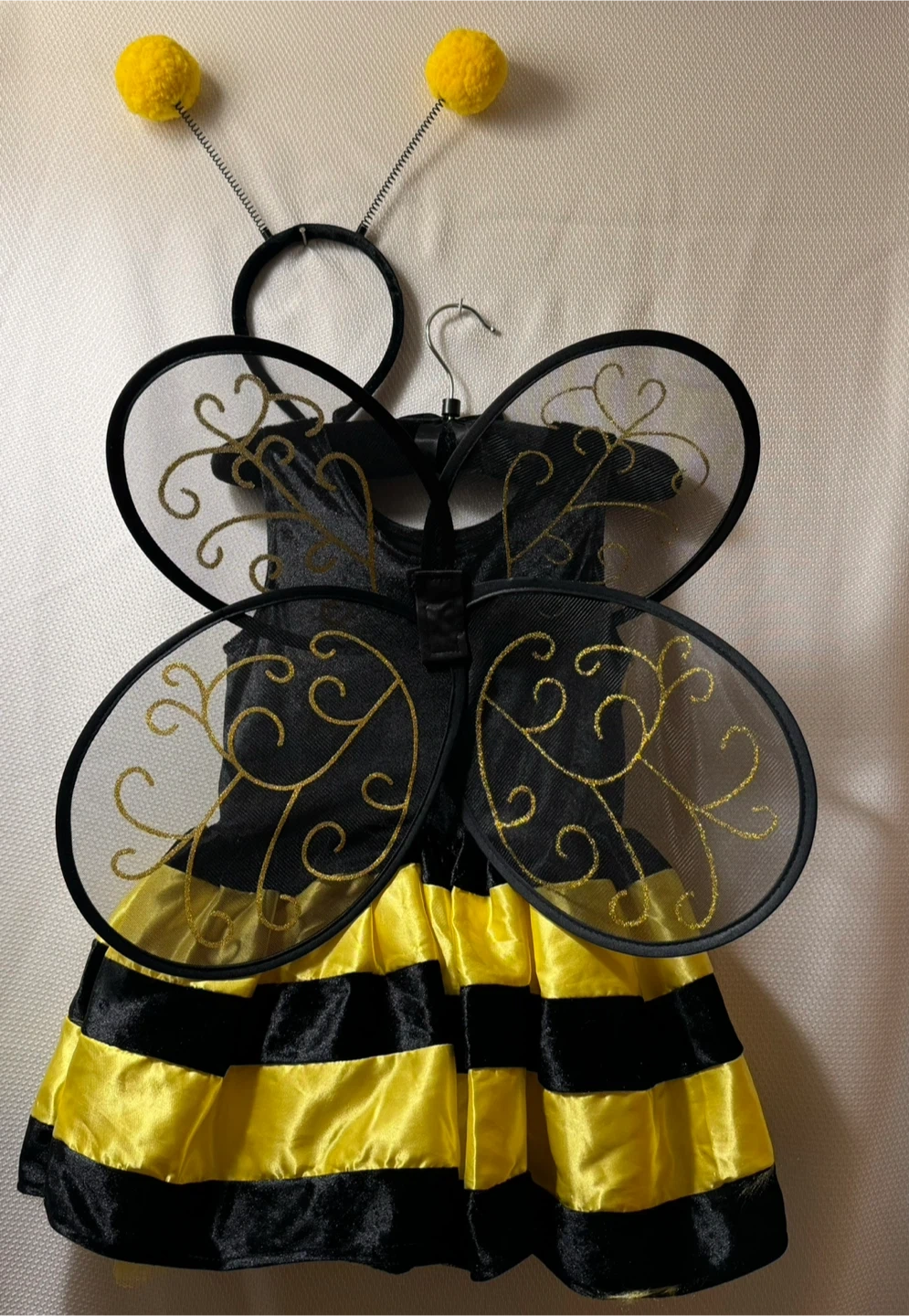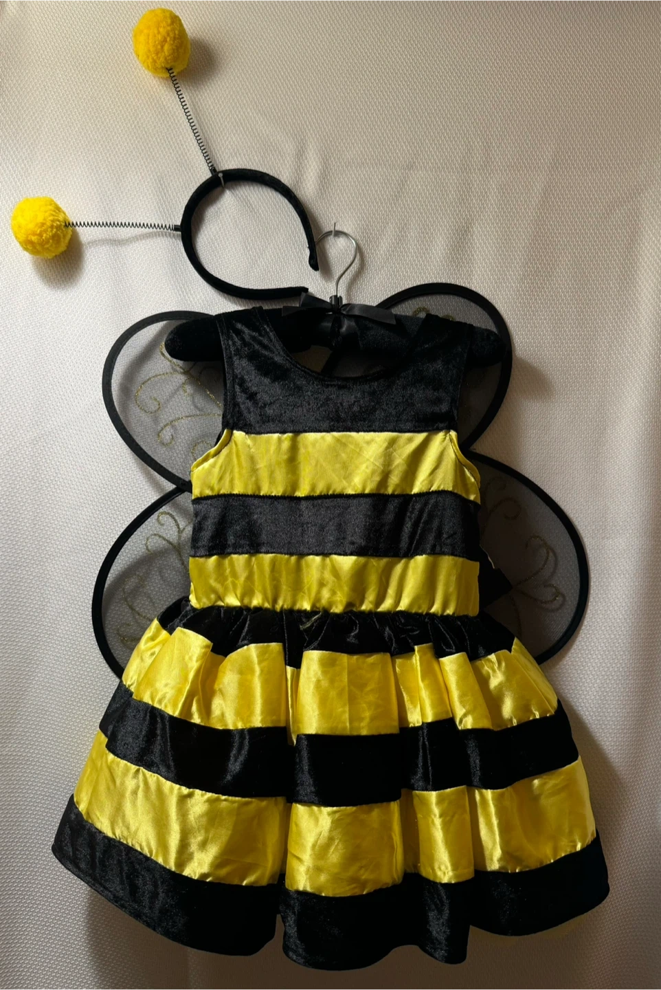 Selling a variety of gently used kids' Halloween costumes! Included are a bee costume with wings and headband, a black cat dress with a bow, a Sully (Monsters, Inc.) onesie size 9/12M, and a hotdog costume. Perfect for dress-up or Halloween fun!