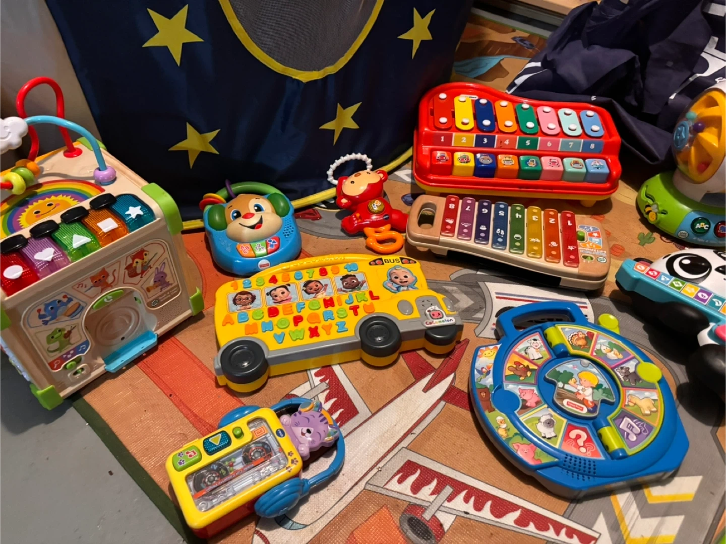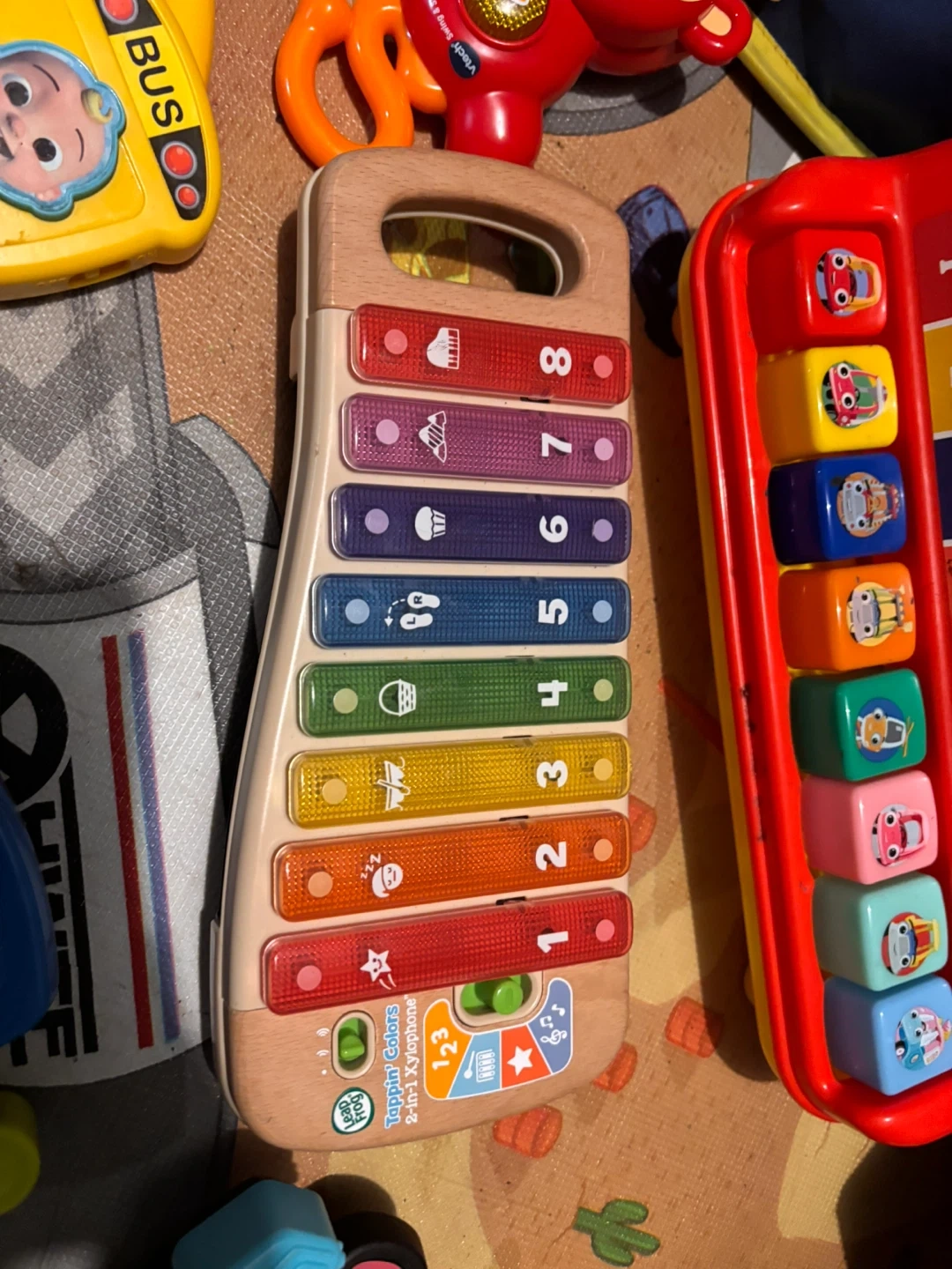 18I have a bunch of musical toys for sale! There's a xylophone, a LeapFrog guitar, and some other fun interactive toys. They're all in good condition and ready for a new home. Perfect for keeping your little one entertained and learning!