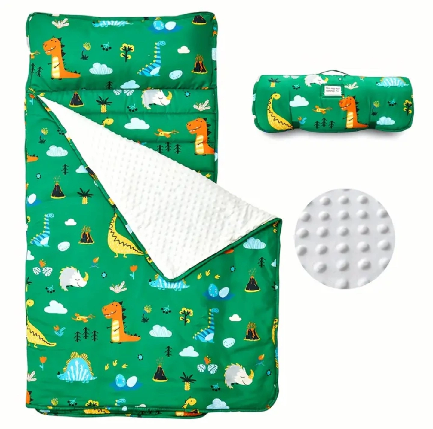 25Adorable nap mats perfect for preschool or daycare. Features a soft, quilted design with a matching pillow and carrying strap. Various designs available: space, dinosaurs, mermaids, and unicorns. Great for kids! 🥕🥕🥕🥕