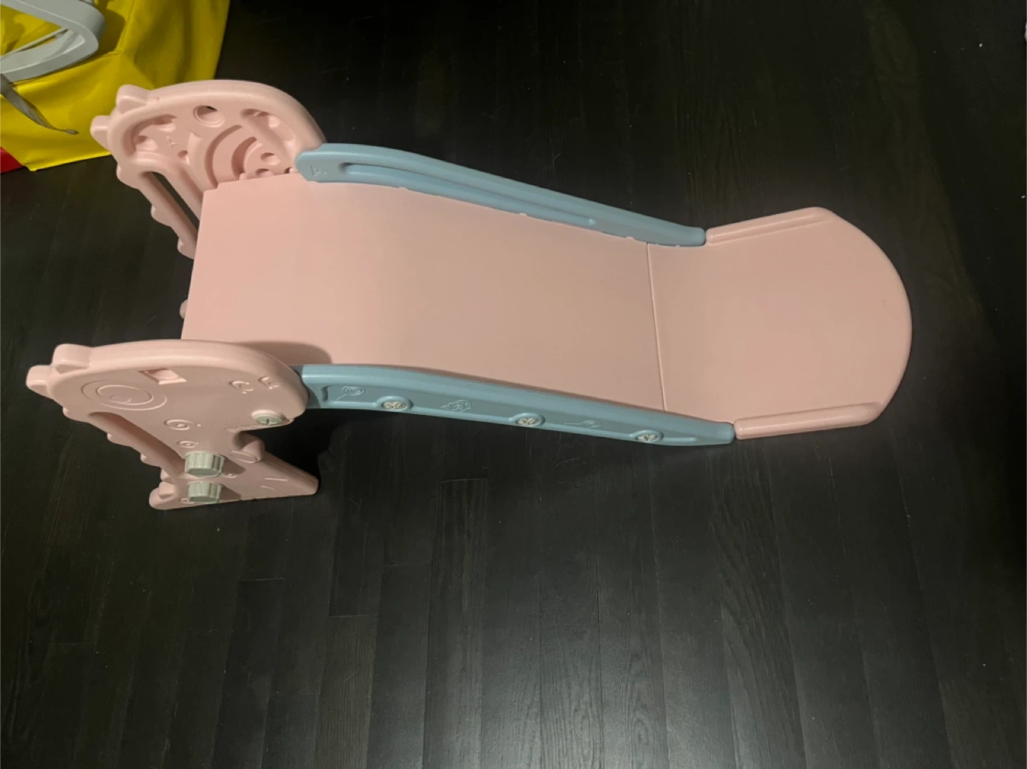 Selling a gently used kids' slide in pink and blue! It's perfect for indoor or outdoor fun. It's in good condition and ready for a new home