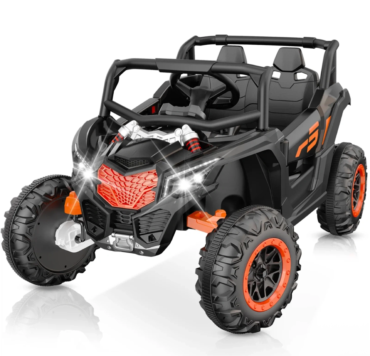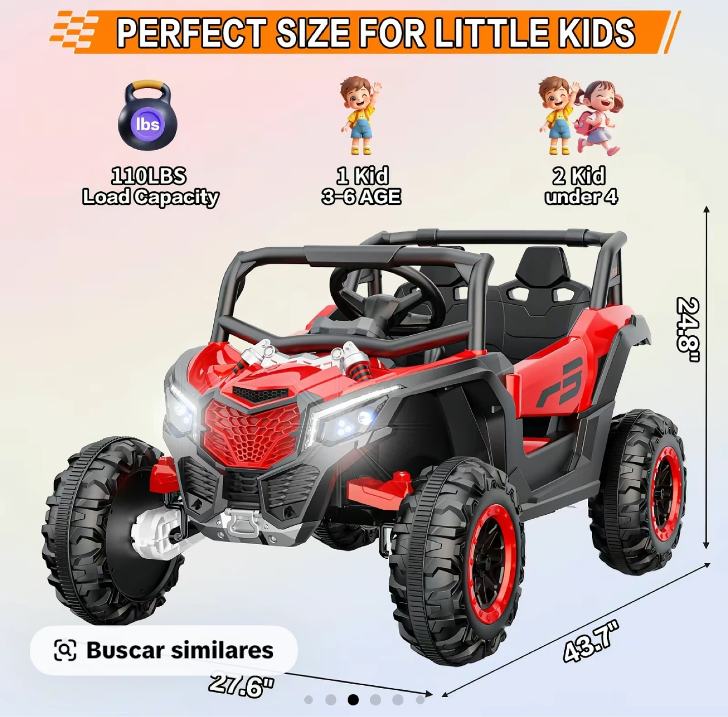 10This ride-on car is perfect for little kids, with a load capacity of 110lbs. It's designed for one child aged 3-6, or two kids under 4. It comes with two seats and safety belts, ensuring a safe and fun ride. The car has two control modes: independent control and parent remote control. It also features music and a horn, a foot pedal, a steering wheel, LED lights, and high and low speeds