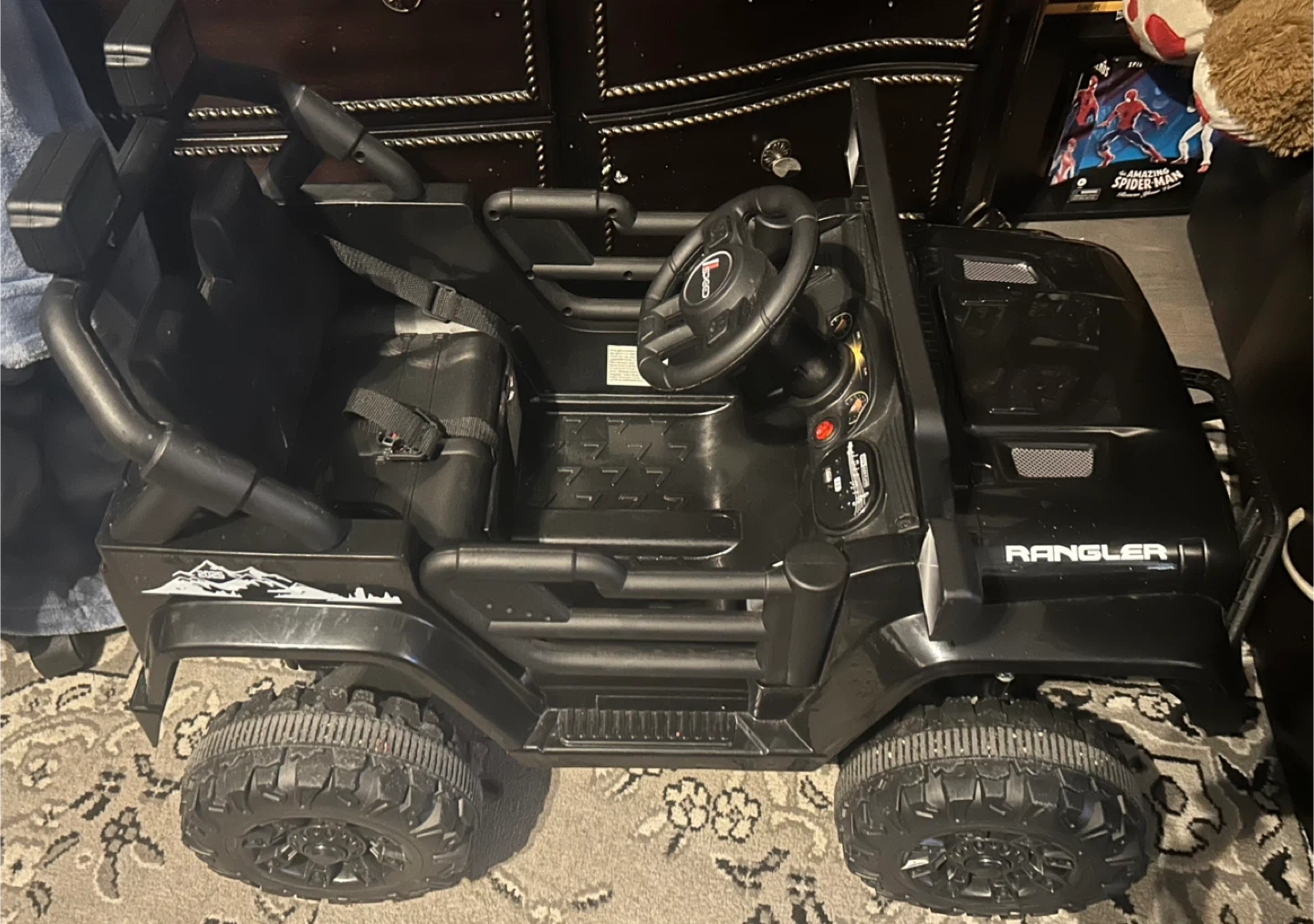 62Selling a black kids ride on truck. It has an "Off-Road Adventure" logo on the back and "Rangler" on the side. Comes with a remote and charger! Selling AS IS Only pick up Cash only