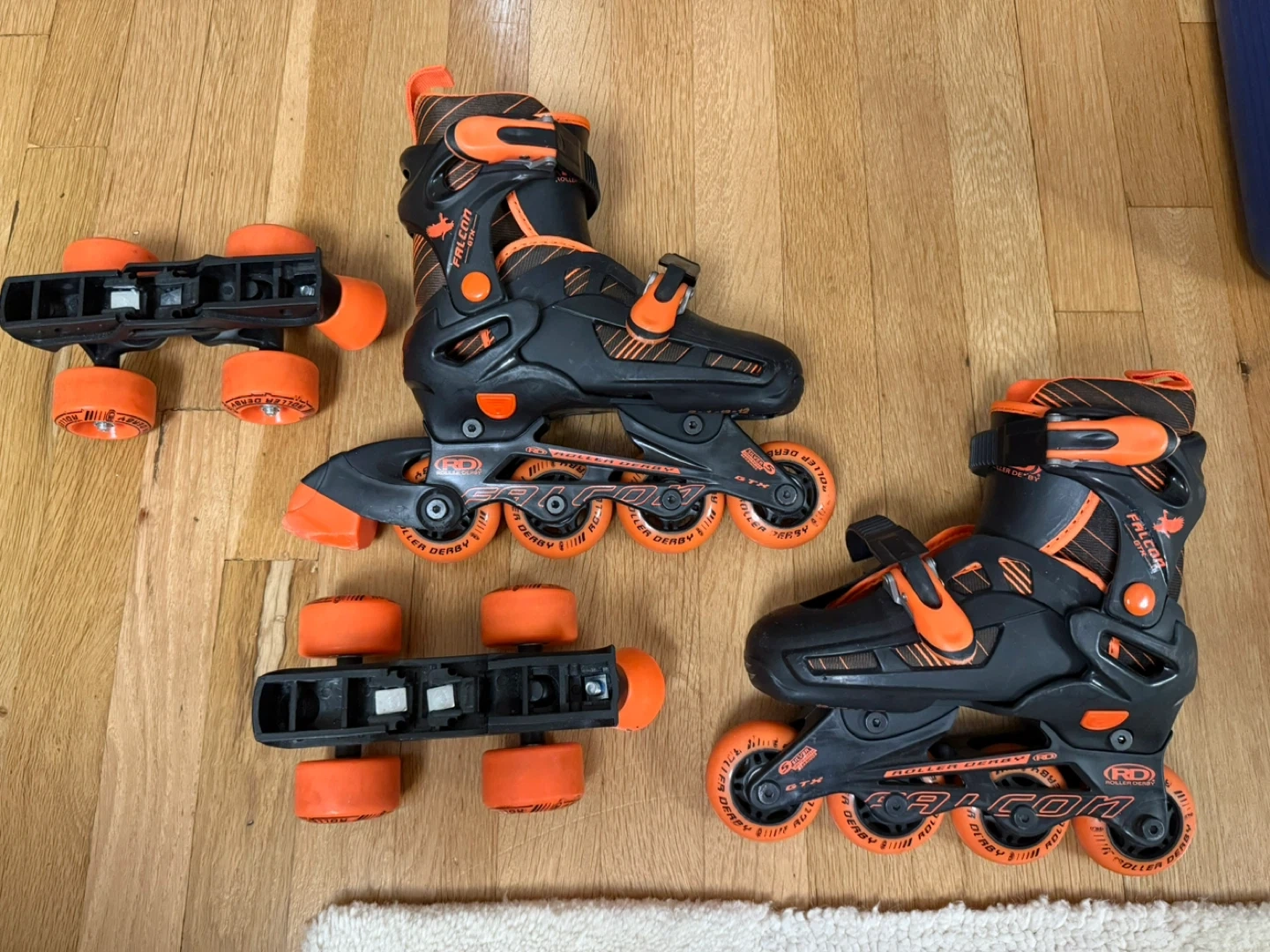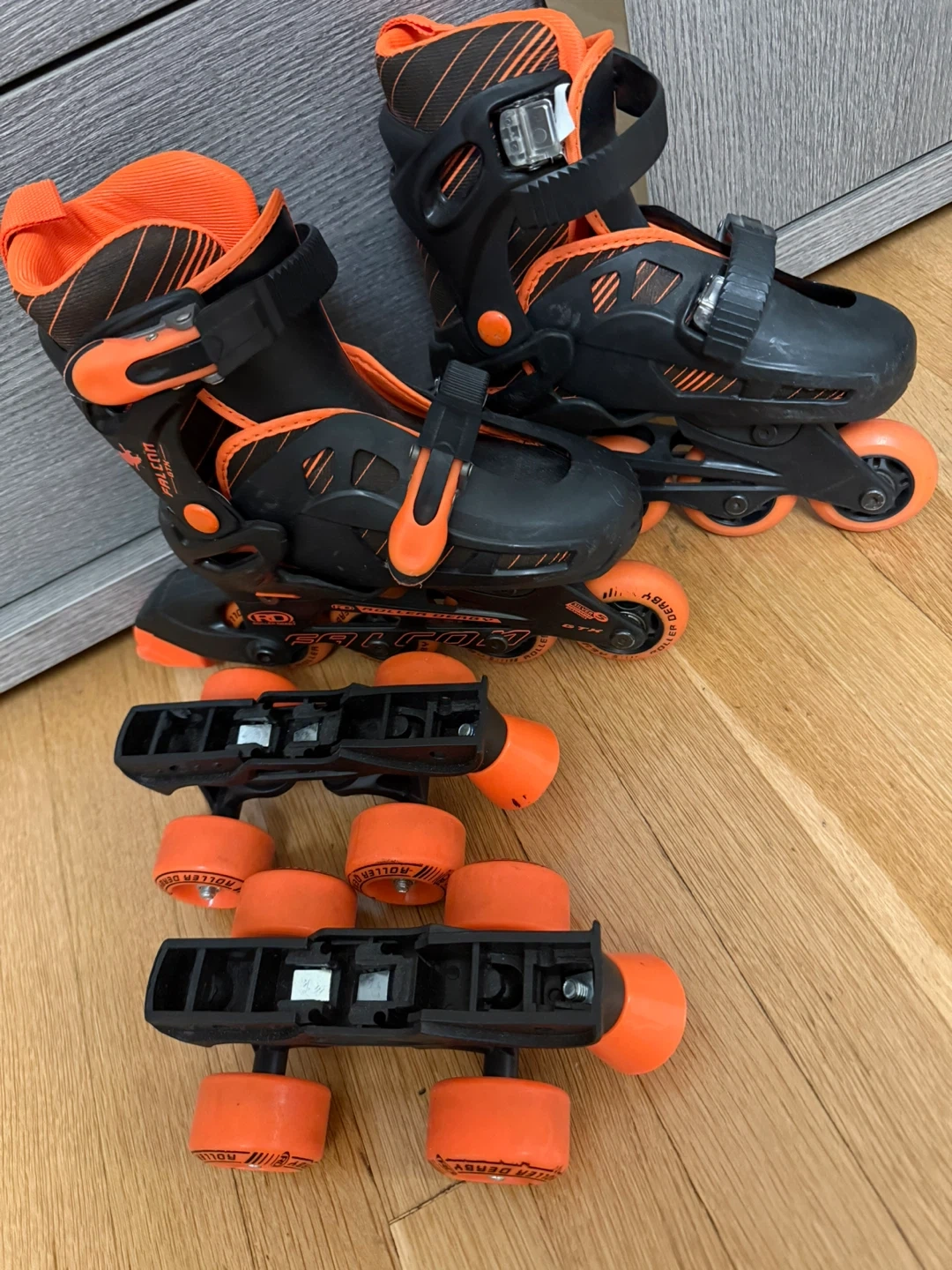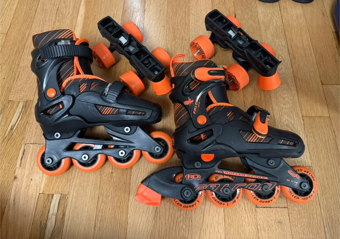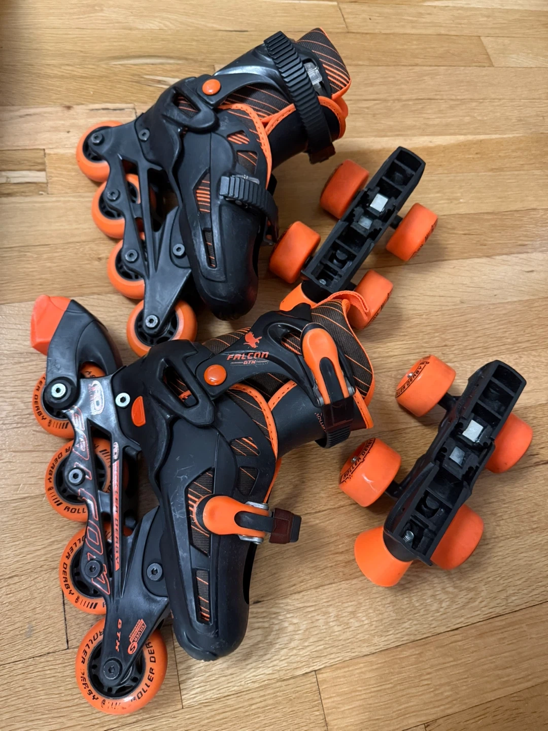 60Selling a pair of Kids Roller Derby Falcon GTX roller skates. They're black and orange and perfect condition. Size 12-2. Worn once.