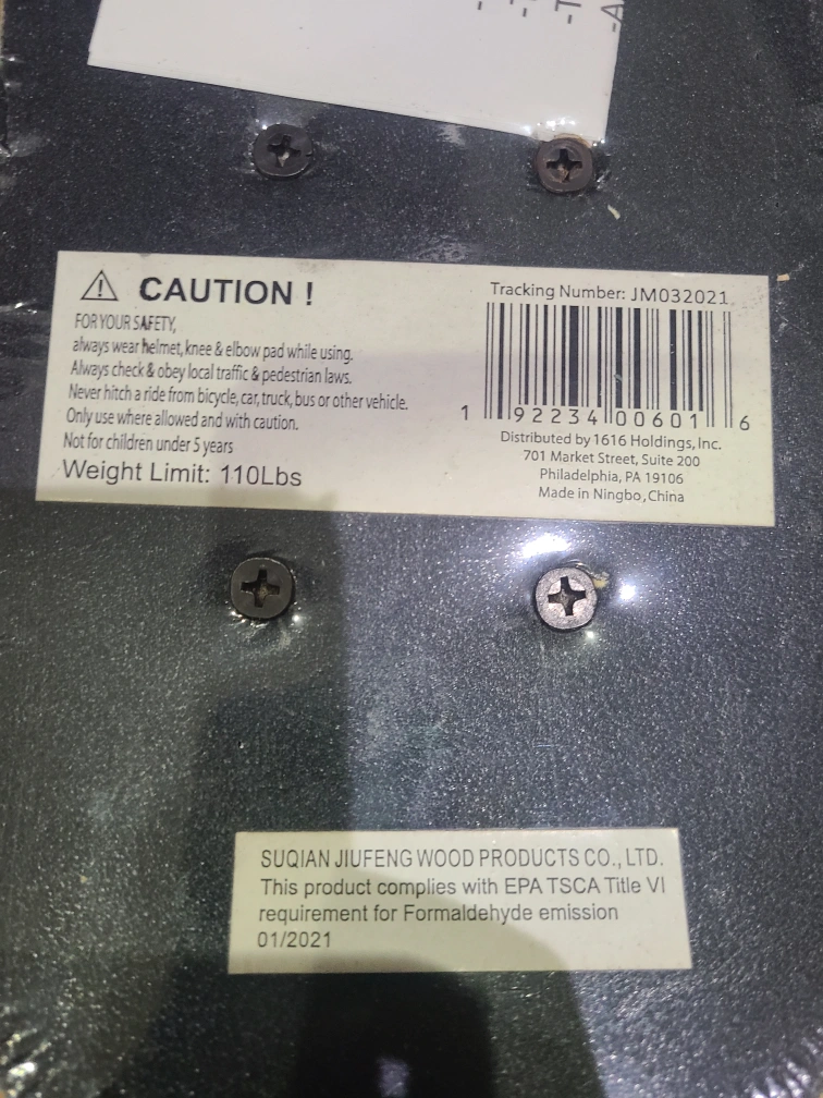 Selling a skateboard with a weight limit of 110lbs. Always wear a helmet, knee, and elbow pads while using. . it's 17 in long by 5 in wide