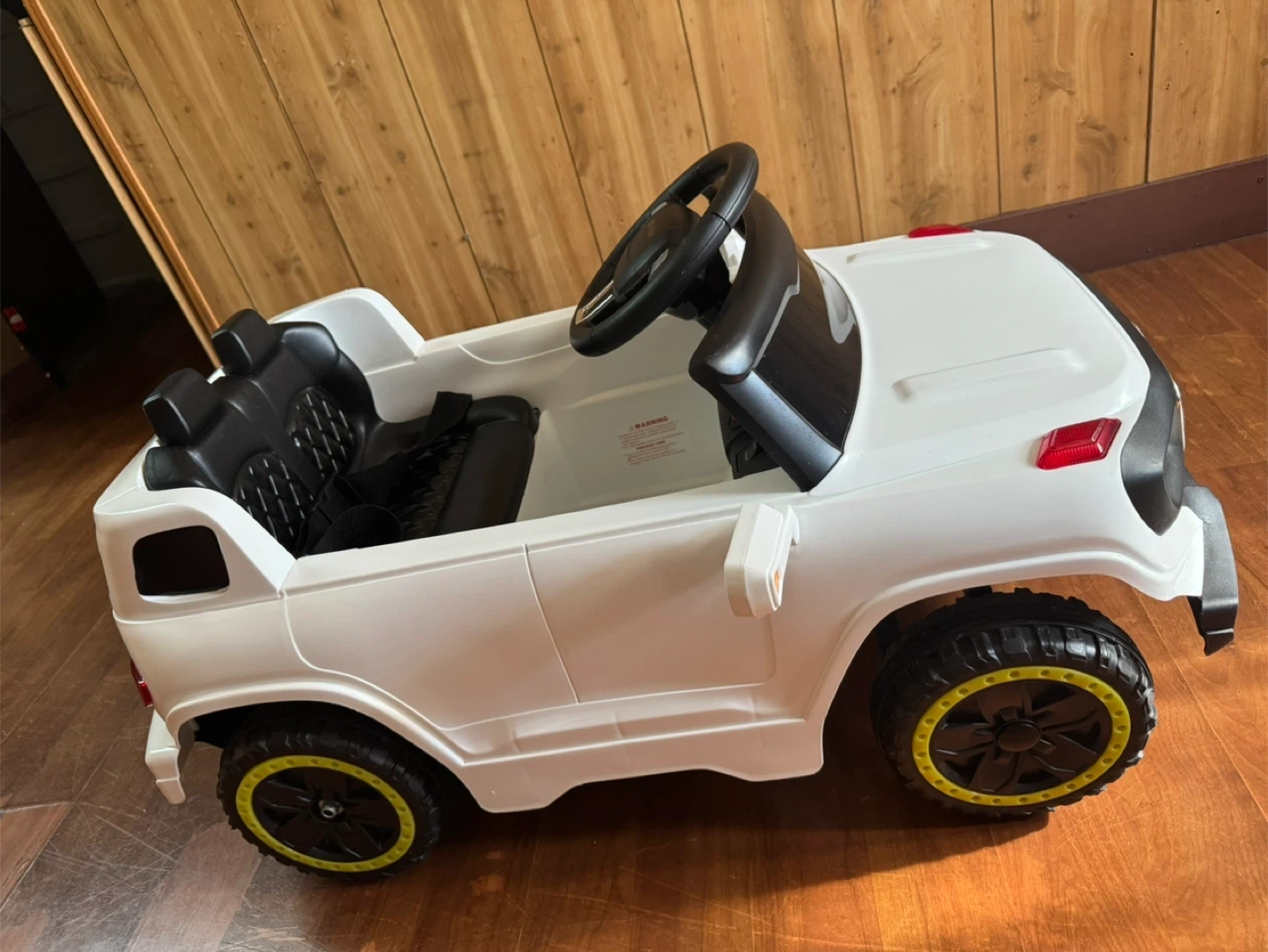 This is a white ride on car for kids! It's in great condition and ready for a new driver lol.