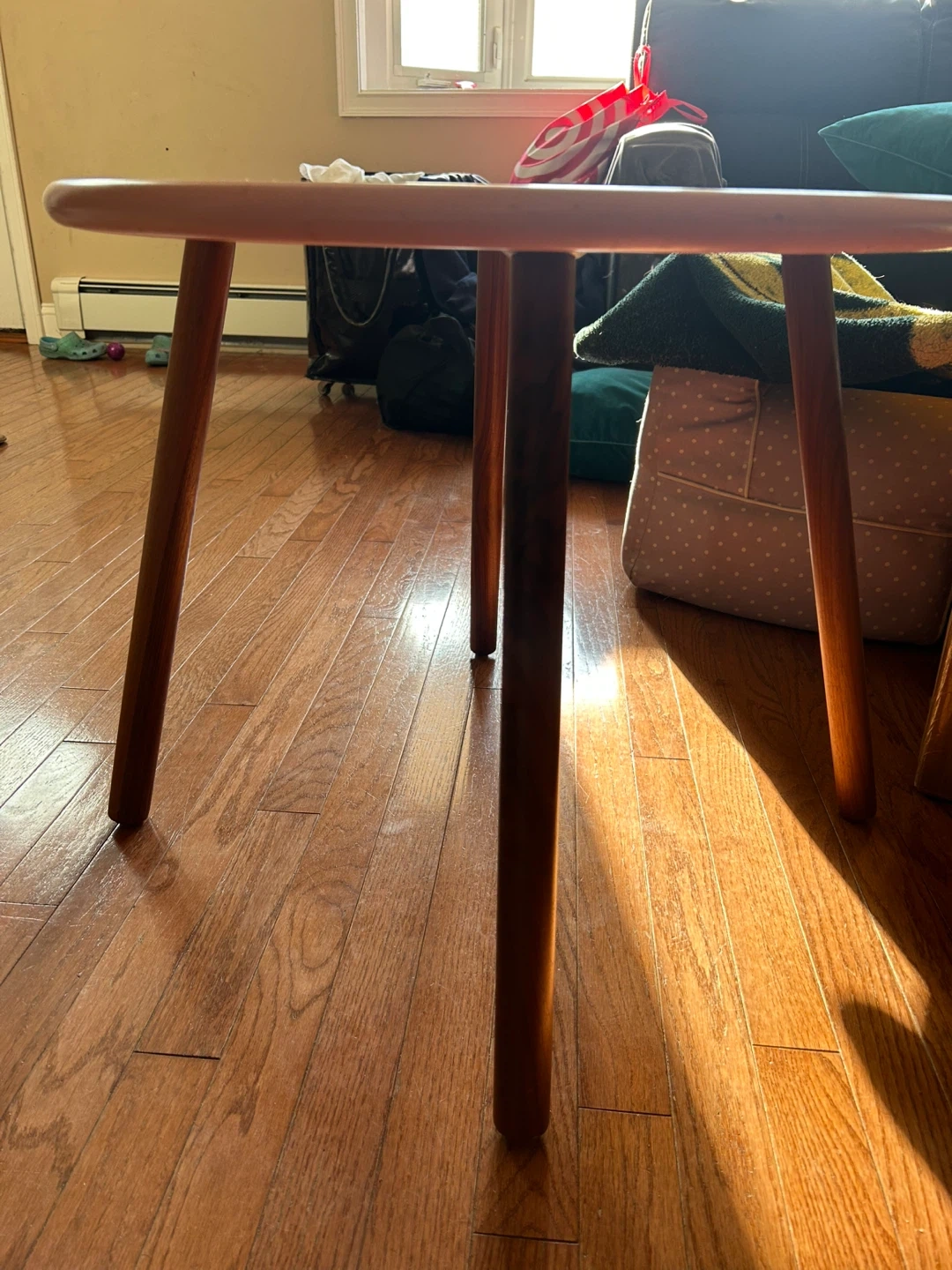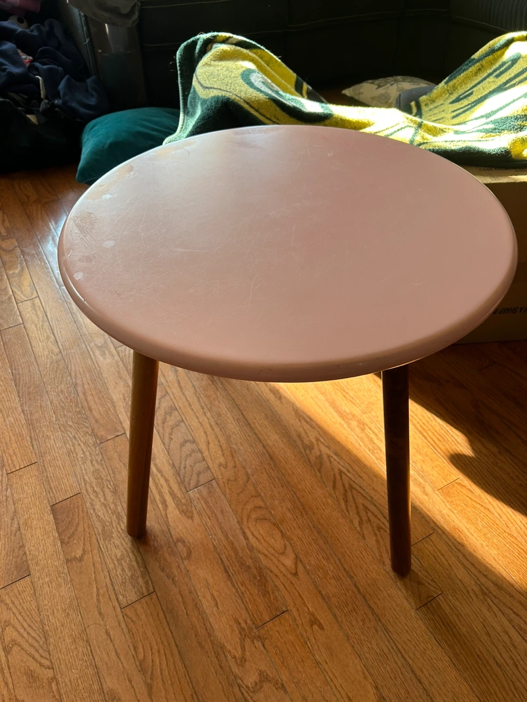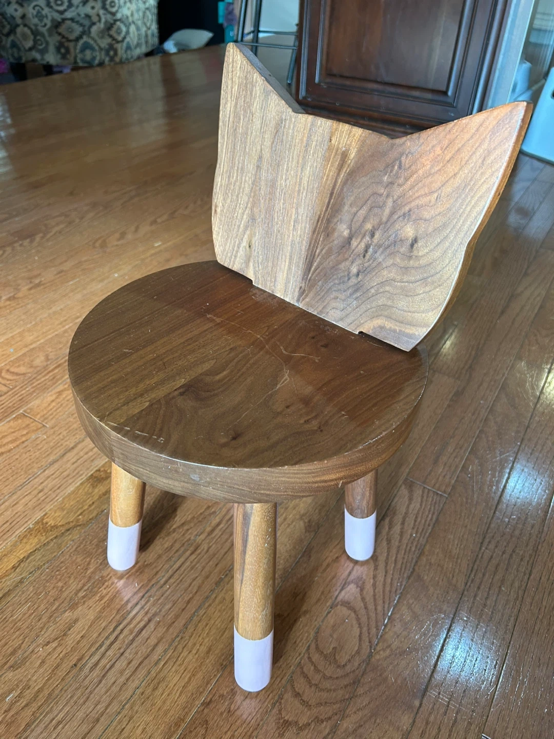 Selling a cute wooden cat chair, perfect for a child's room or play area! It's in good condition and ready for a new home. I'm also selling a small pink table, great for kids' activities or as a side table