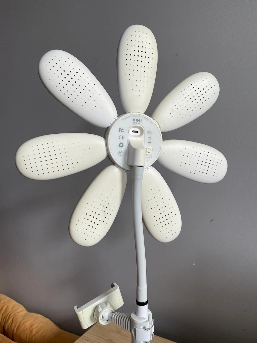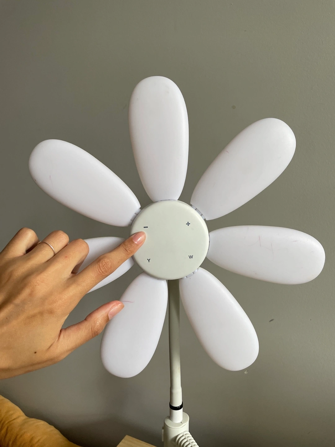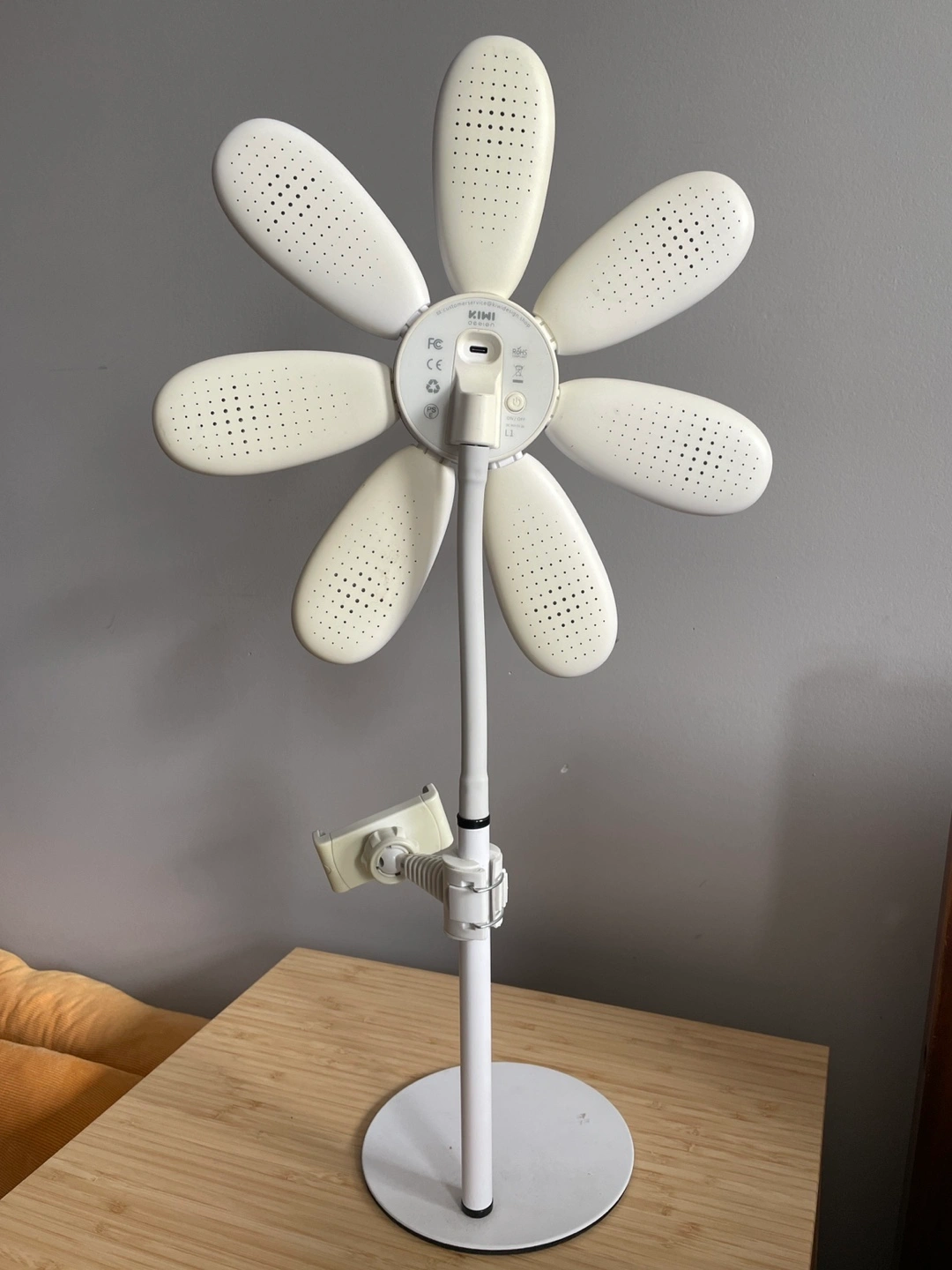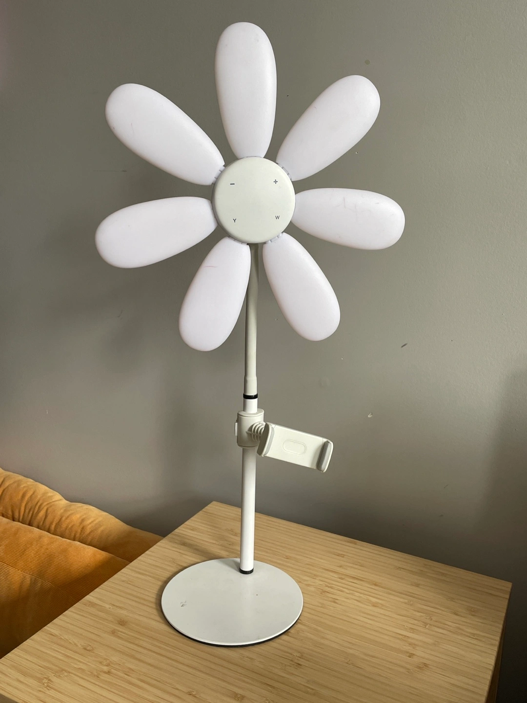 161~ Not sure if it’s still working but I think it will with the right chord or box. Or you can reach out to customer service to get it fixed. ~ White LED desk lamp. Flower shaped. Adjustable brightness. Includes phone holder. USB rechargeable. Does not include chord.