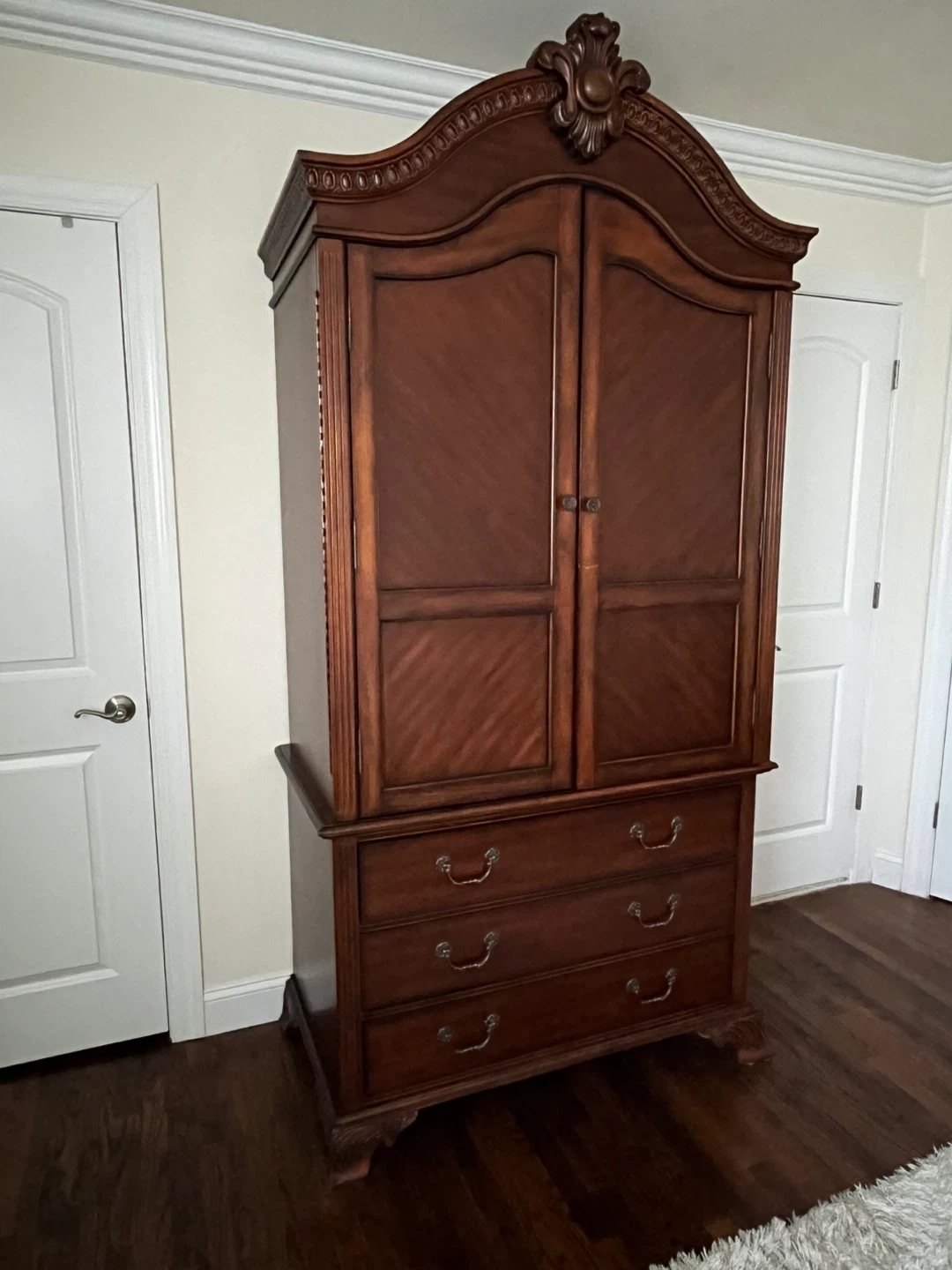- DimensionsDresser 64” W x 20” Deep; Armoire 45” W x 24” D
