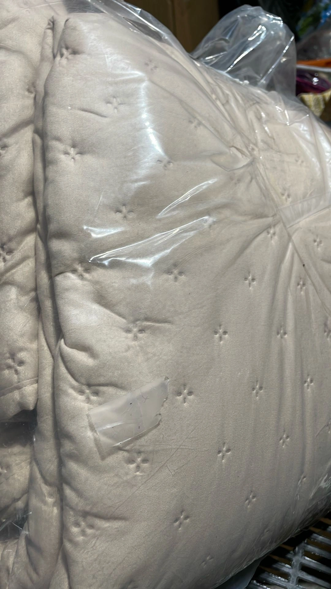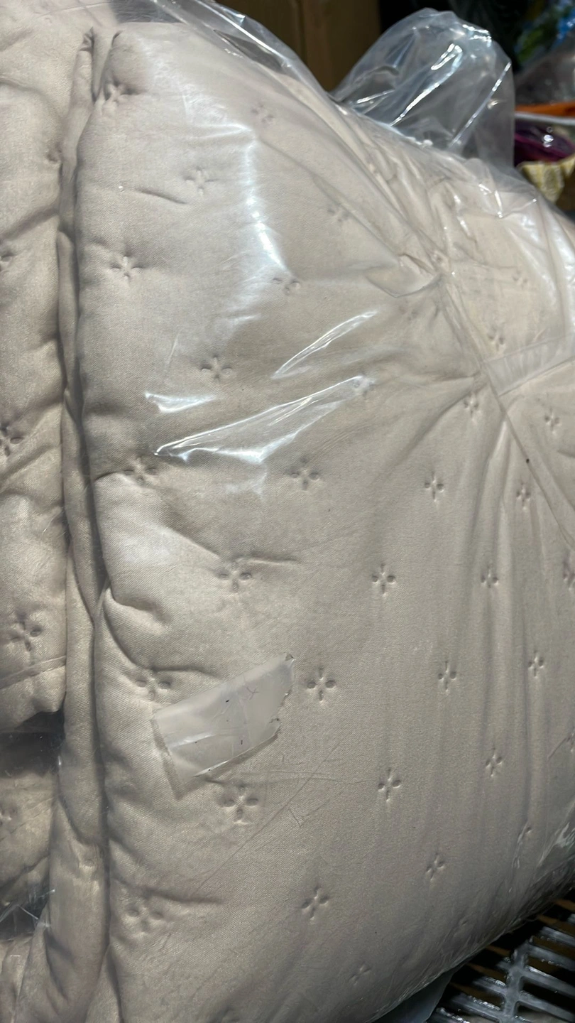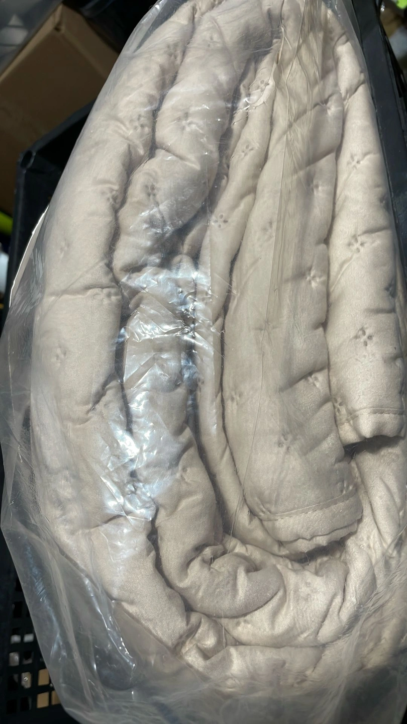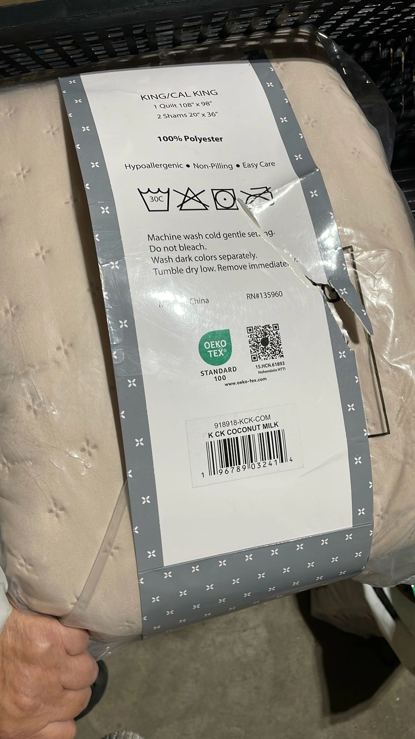 60KING/CAL KING 1 Quilt 108" x 98" 2 Shams 20" x 36" 100% Polyester Hypoallergenic • Non-Pilling • Easy Care Machine wash cold gentle setting This was a returned item and does not appear to have been unfolded. Porch pickup in Joliet Near McWethys Size: King Color: Beige Material: Polyester Style: Minimalist Type: Quilts & Bedspreads